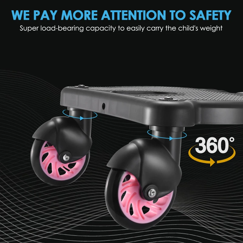【more convenient travel】: easy to travel with children. After connecting to the pram, children can stand or sit on the pedals, which is suitable for 99% baby carriages.