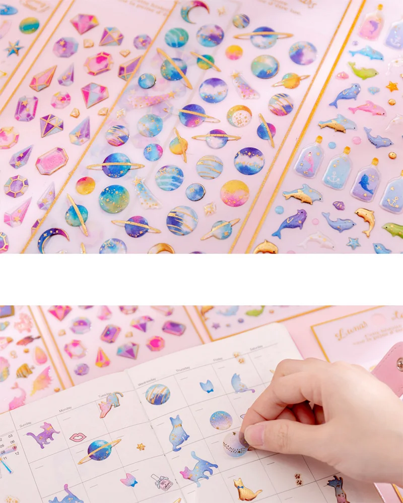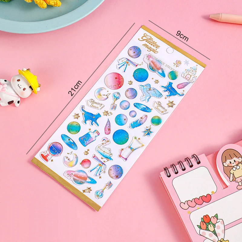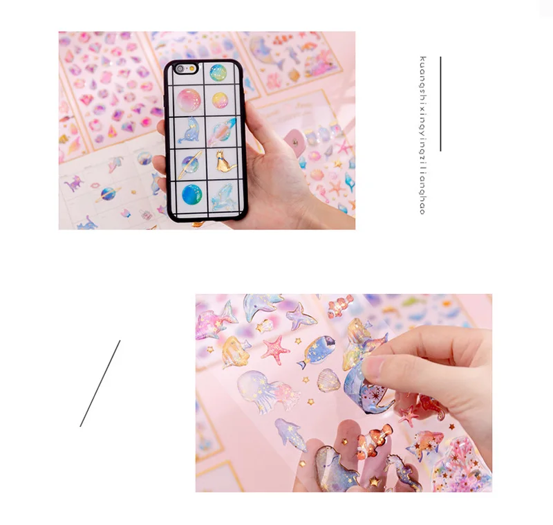 Descripción: el material del producto es resina de cristal, transparente. Adecuado para cuadernos, cajas de papelería, teléfonos móviles, ordenadores, neveras, paredes, manos de niños, etc. donde se le ocurra.