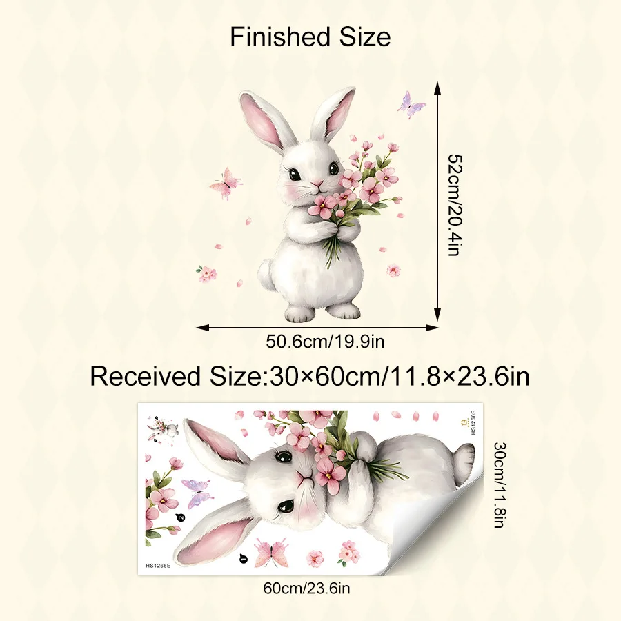 Adhesivo decorativo para pared de dibujos animados de conejo, papel autoadhesivo extraíble, dormitorio, sala de estar, pegatina decorativa para entrada