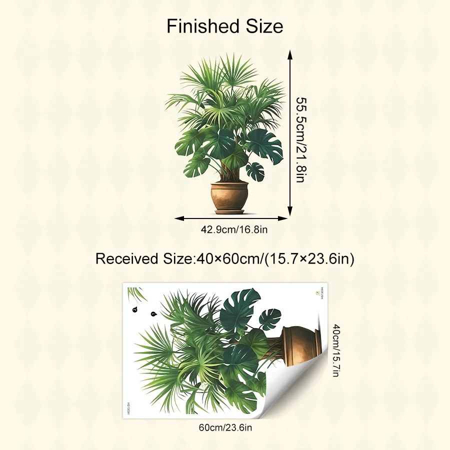 Adhesivo de pared autoadhesivo de planta de hoja de palma para entrada de sala de estar y decoración del hogar - imagen 3