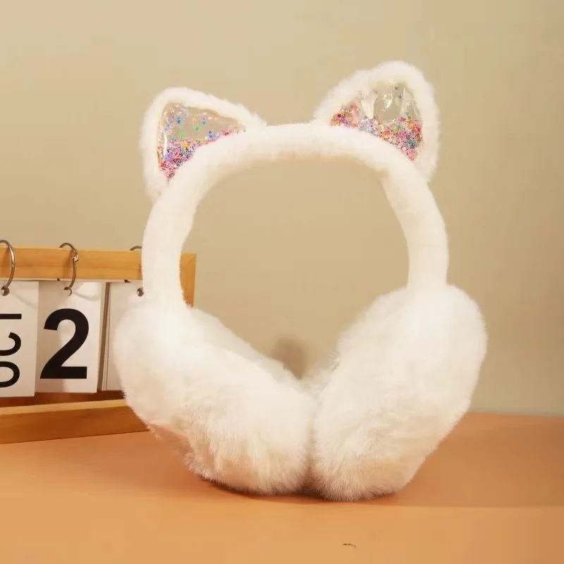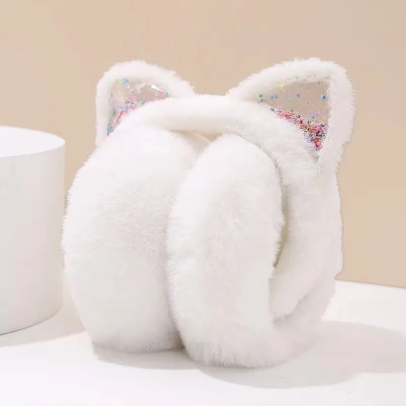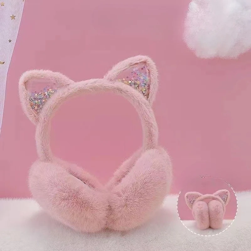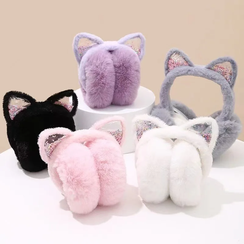 Adorable diadema con orejas de gato para niños, orejeras plegables de invierno, piel sintética de felpa, forro polar grueso térmico para otoño e invierno