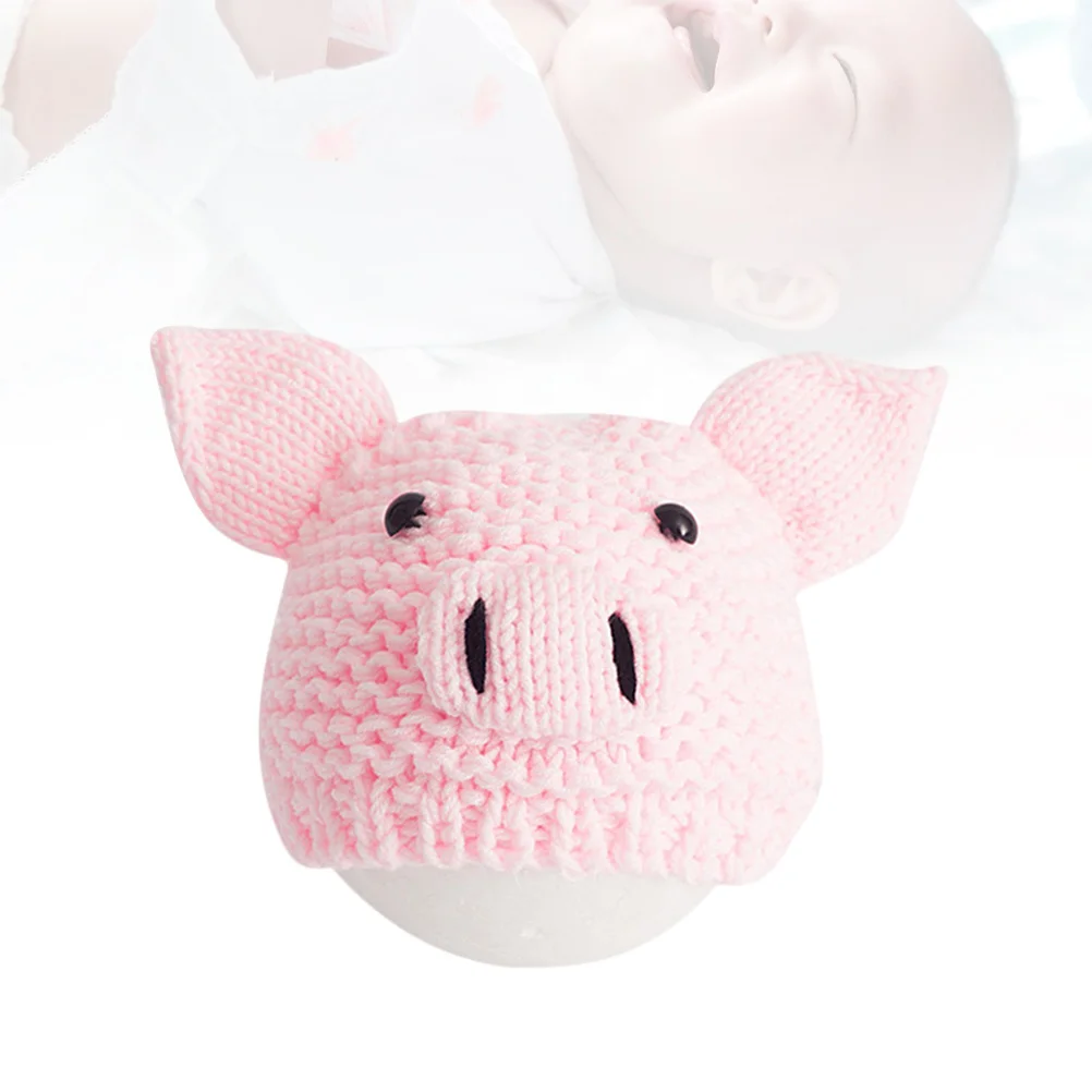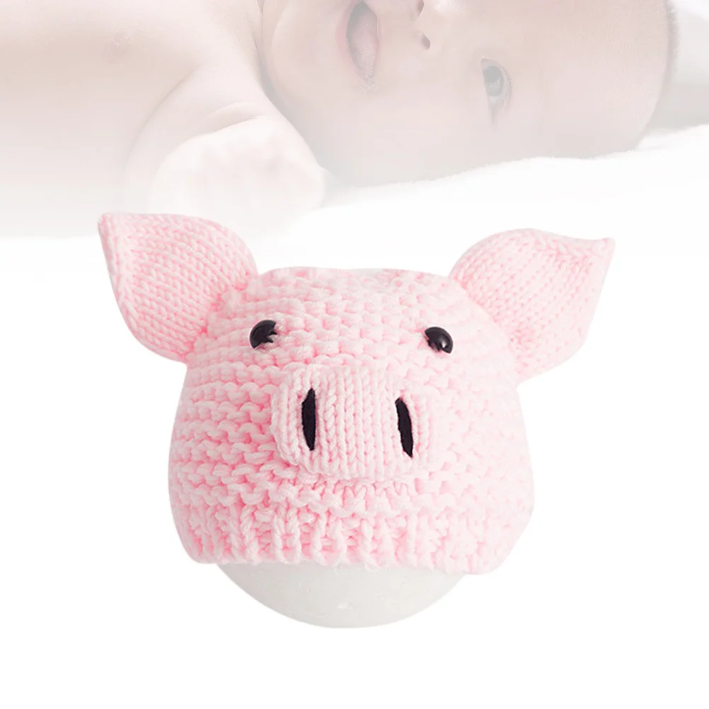 Adorable gorro de punto rosa para recién nacido, diseño de cerdo, accesorios para fotos de bebés para fotografía infantil y uso diario, cómodo y suave para bebé