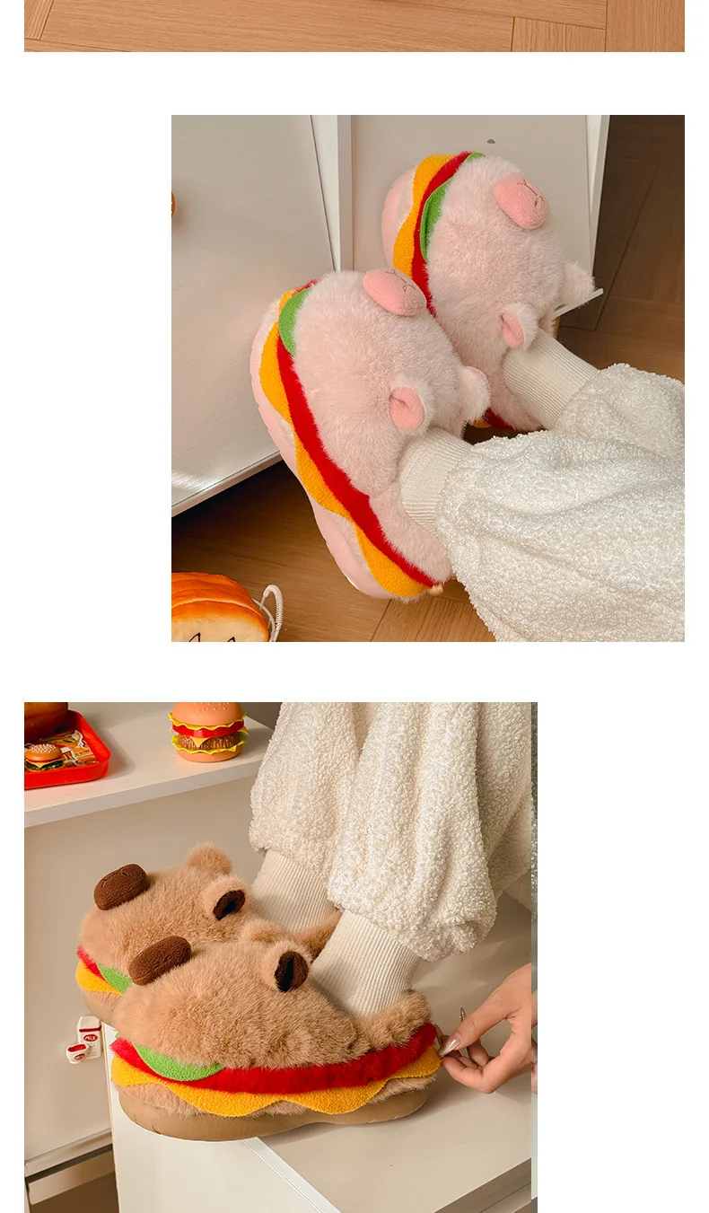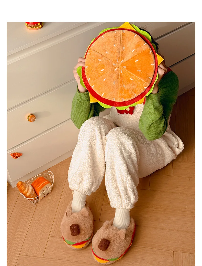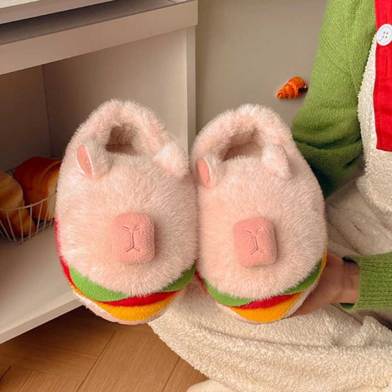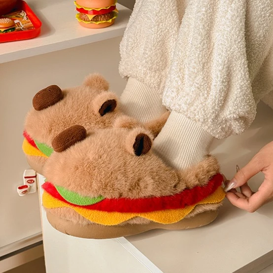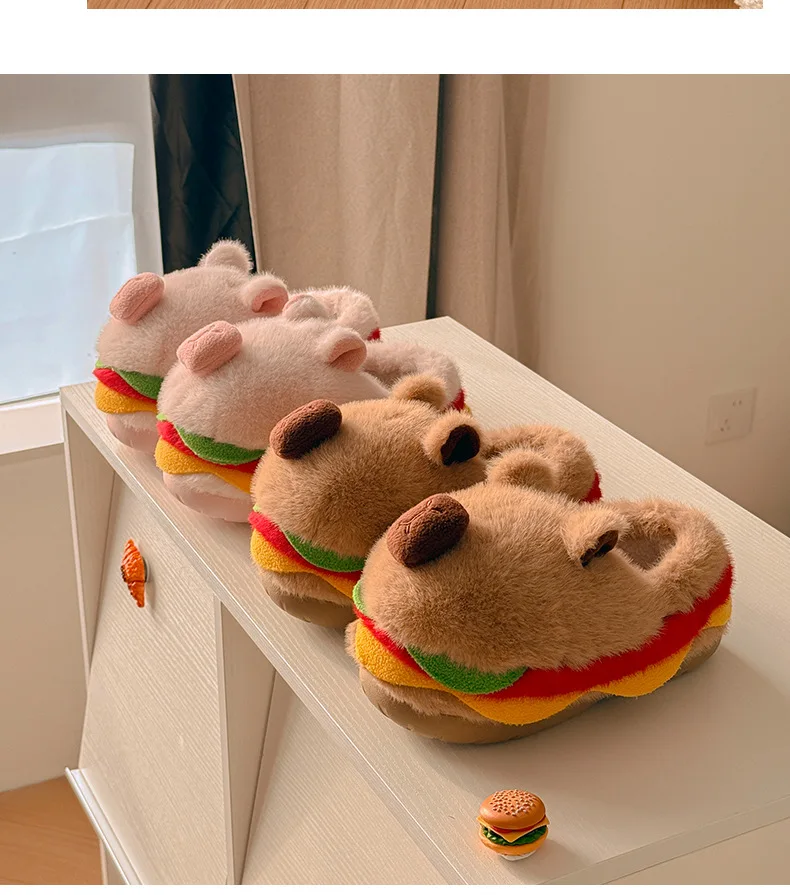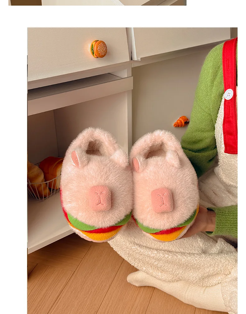 Comprar Adorables zapatillas mullidas de hamburguesa para mujer, zapatos de algodón capibara de piel cálida para interiores, invierno 2025, nuevo