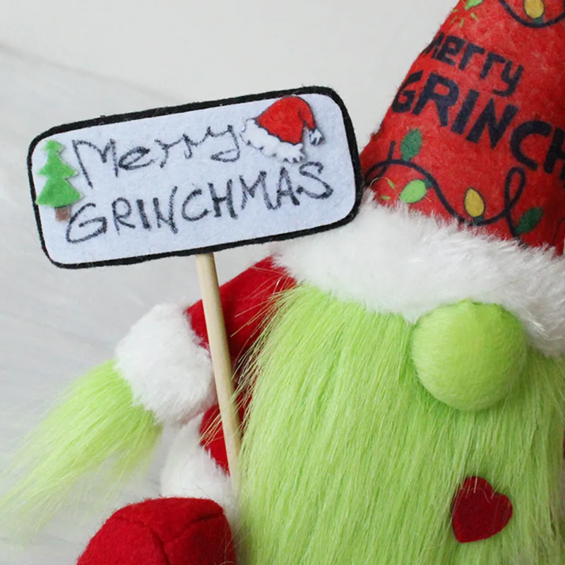 Comprar Adorno de muñeca sentada de barbudo largo, decoración festiva de ambiente de fiesta navideña, muñeca sin rostro de pelo verde, decoración del hogar