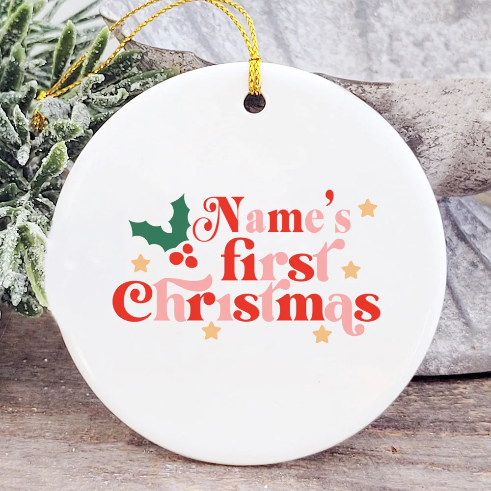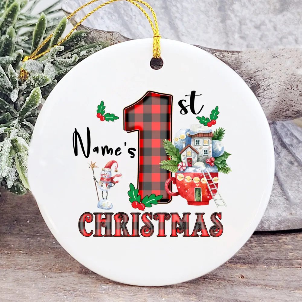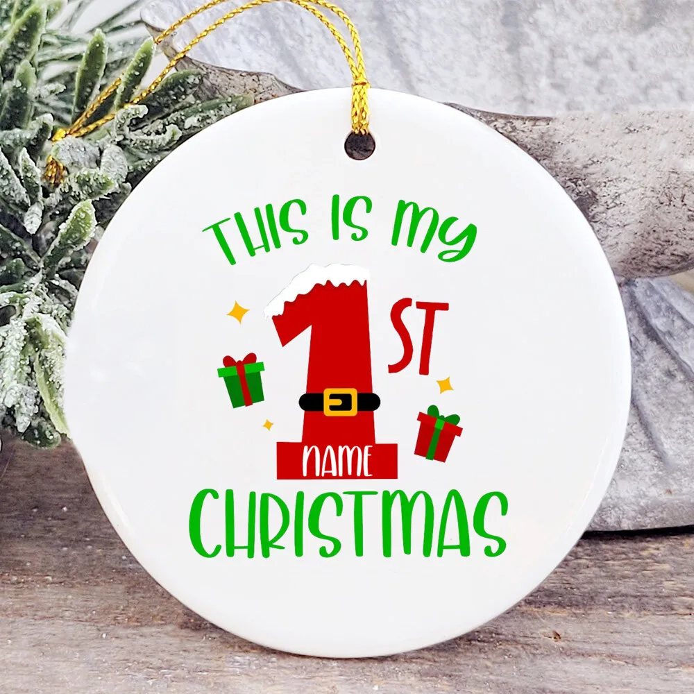 Adorno Navideño Personalizado para Bebé, Accesorio de Primera Foto Navideña, Regalo de Recuerdo, Adorno de Cerámica Infantil