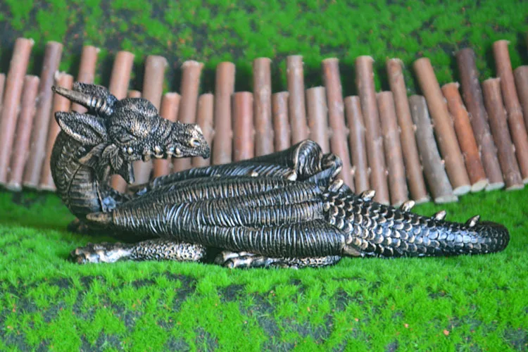 Comprar Adornos hortícolas de Dragón Volador para patio, cabeza elevada y cola, decoración del hogar y jardín, adornos divertidos, artesanías de resina
