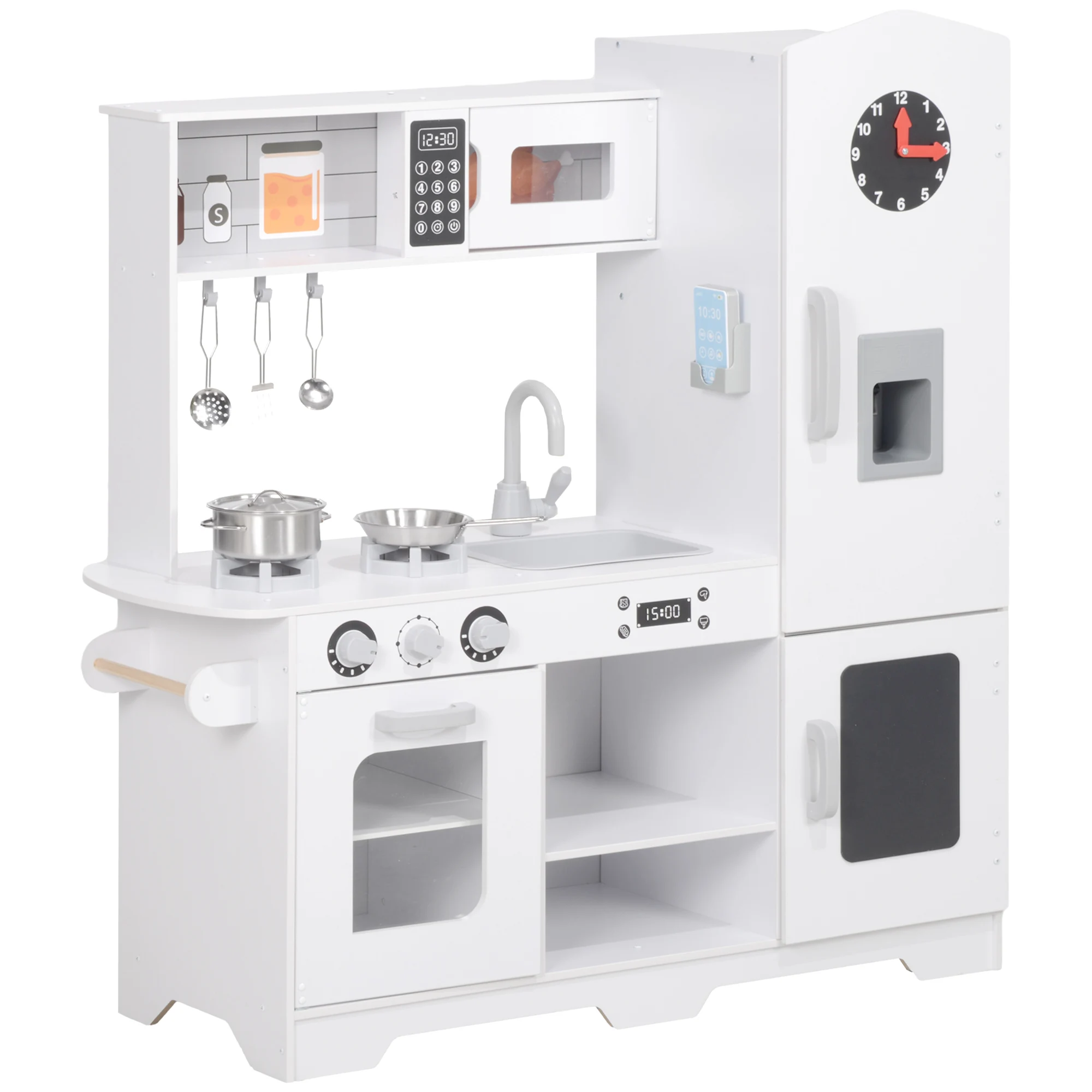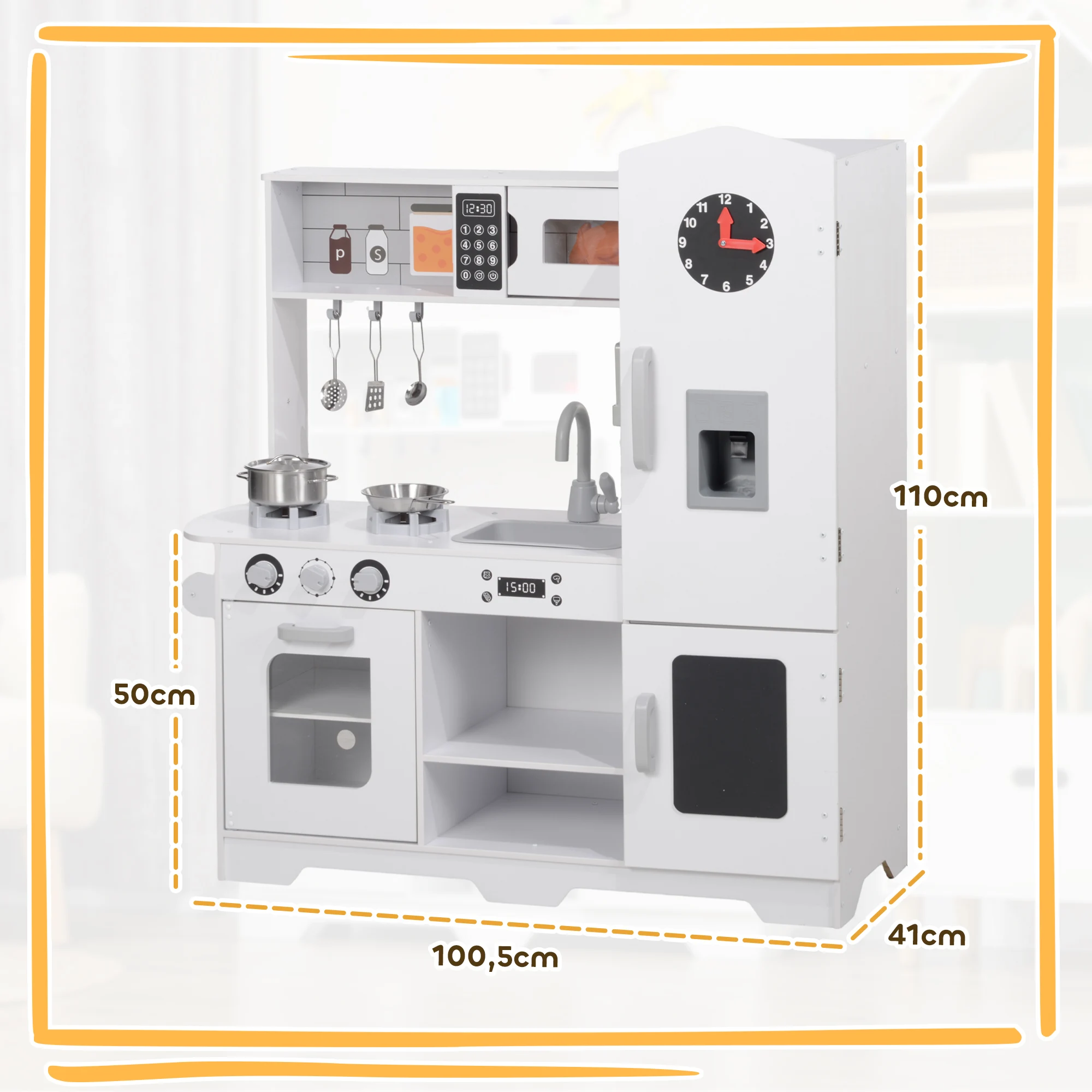 Comprar AIYAPLAY Cocina de Juguete para Niños +3 Años Cocina de Madera Infantil Cocinita Infantil con Fogón Grifo Fregadero Microondas Reloj Máquina de Hielo y Accesorios de Cocina Blanco