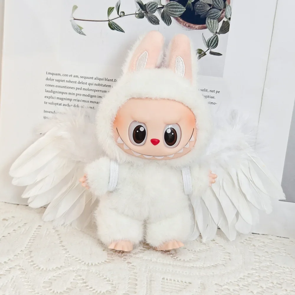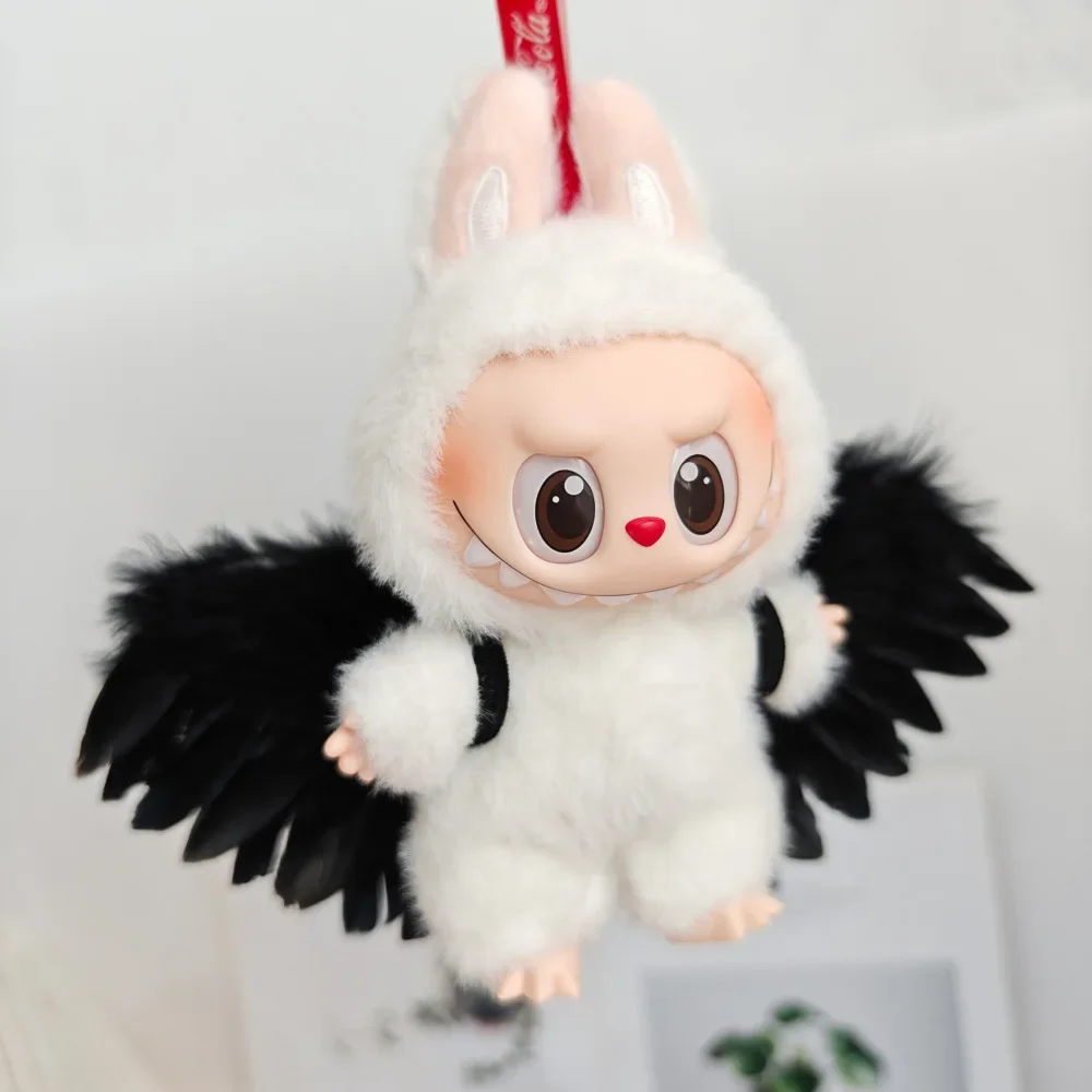 Alas de plumas de Ángel en blanco y negro, juguete de 15-17cm DIY Mini para accesorios de ropa Labubu, lazo, fiesta, regalo de Navidad para niñas