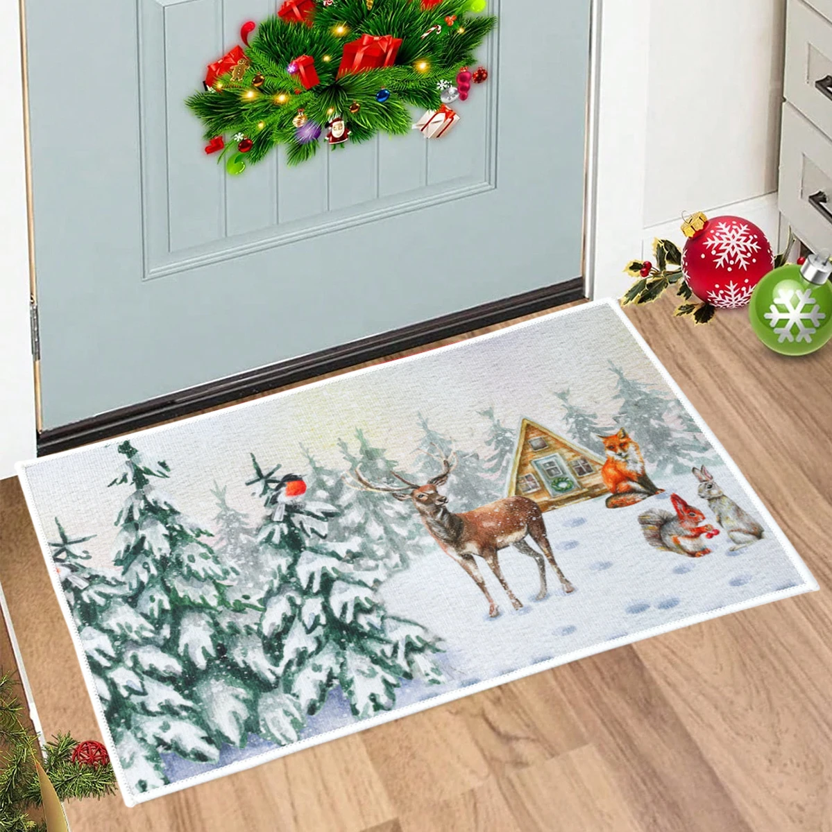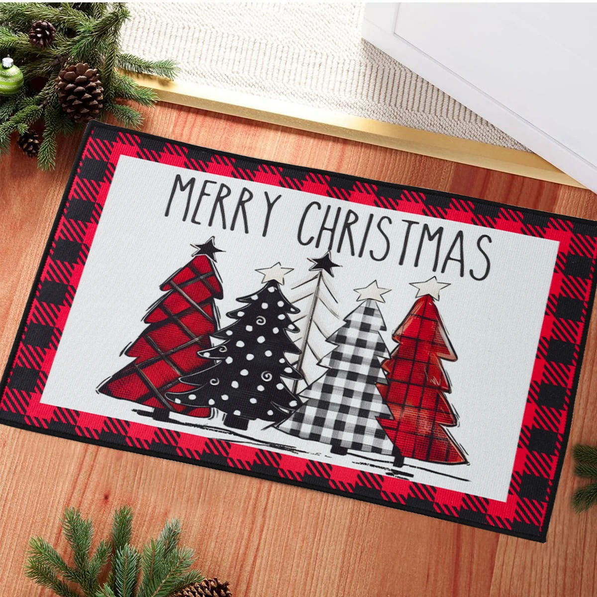 Alfombra decorativa navideña para puerta de entrada, dormitorio, baño, inodoro, alfombra antideslizante, Feliz Navidad, regalo de Año Nuevo 2024