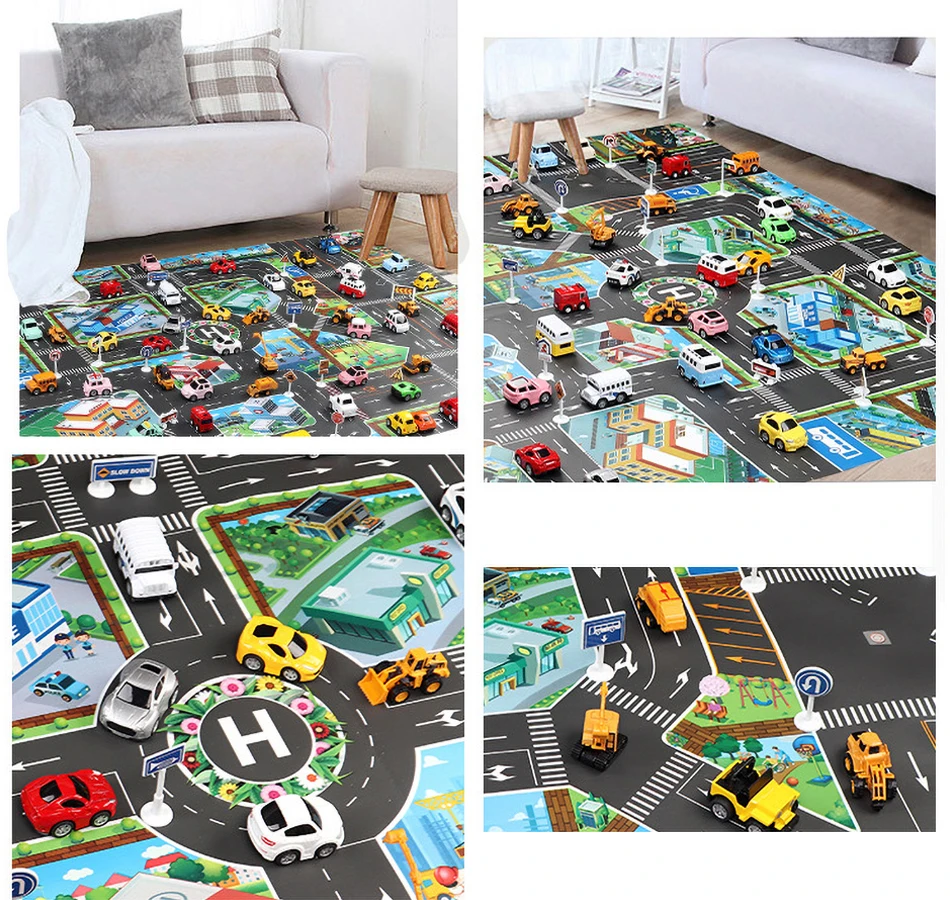 Comprar Alfombra de juego para bebés, mapa de carretera para niños, alfombra de tráfico fino de plástico de dibujos animados, juguetes para niños pequeños y niñas, tapete educativo para bebés