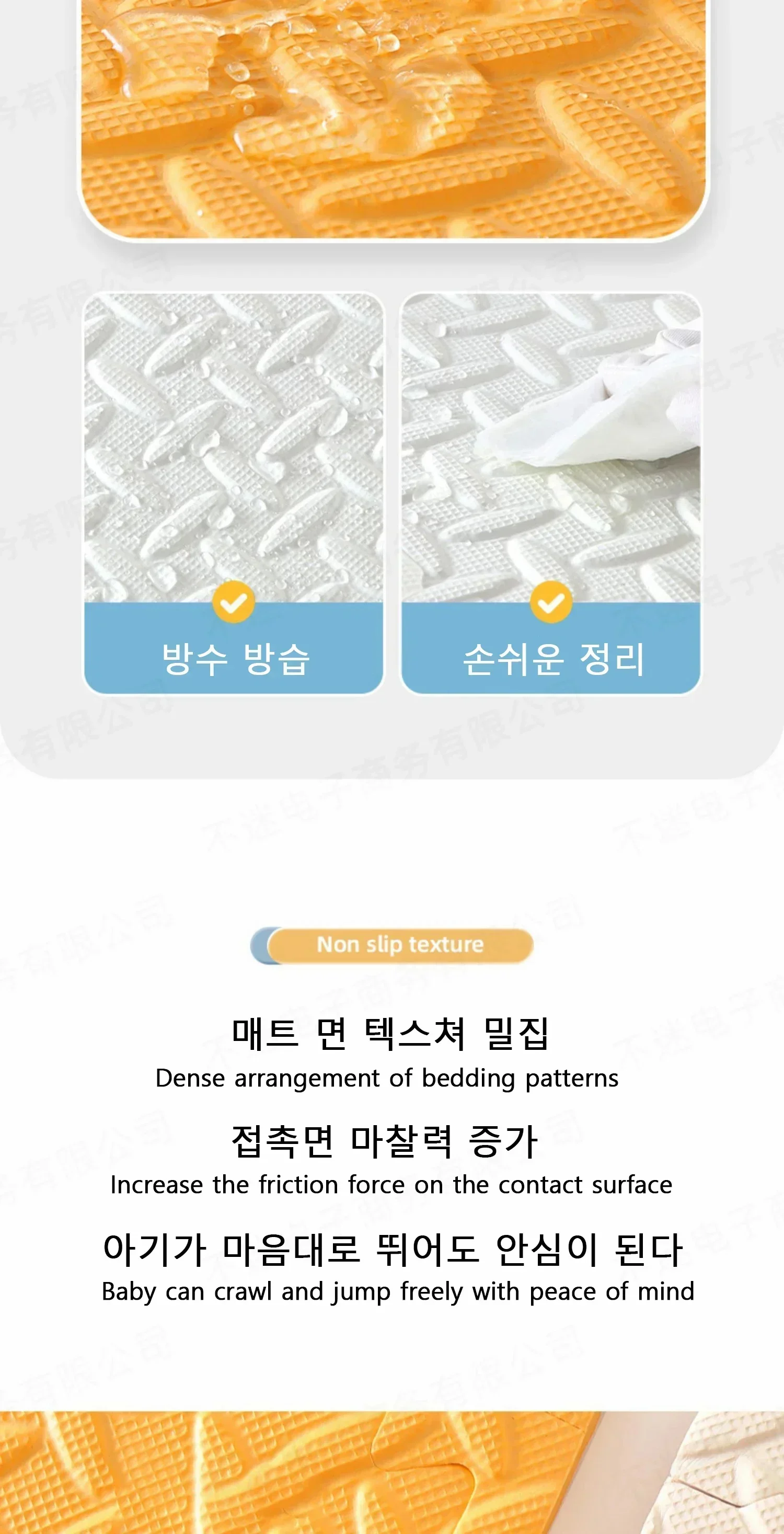 Es adecuado para que los bebés aprendan a gatear. El cojín es suave y cómodo, protege al bebé de daños, seguro e inodoro, se adhiere firmemente a la piel sin irritarla. Se puede empalmar libremente, cortar libremente, antideslizante y fácil de almacenar. Después de recibirlo, se recomienda limpiarlo primero y luego secarlo, ya que se puede usar normalmente. (Se puede utilizar para envolver las esquinas de la Mesa y los bordes de las ventanas después del corte)