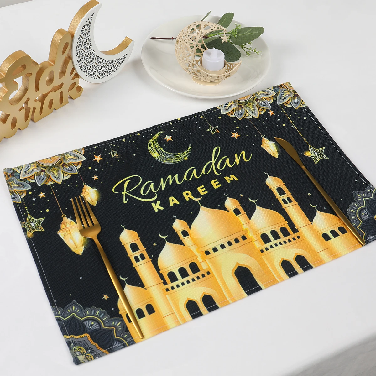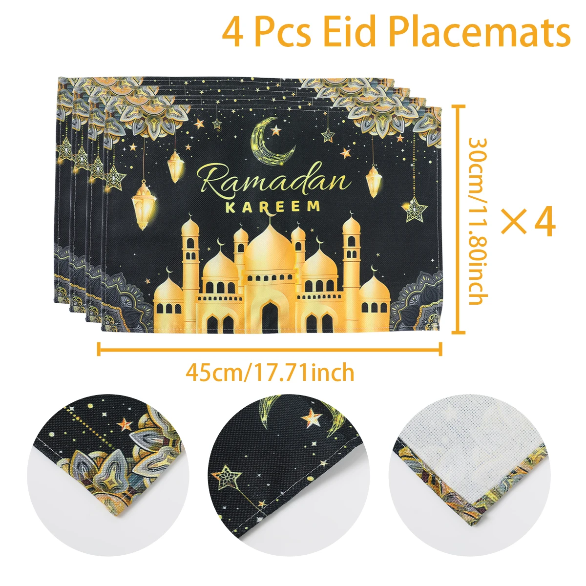 Comprar Alfombrilla de comedor Eid Mubarak para el hogar, Mantel Individual de Ramadán Kareem para mesa, suministros de decoración de fiesta Eid al-fitr musulmán islámico, 4 piezas, 2023