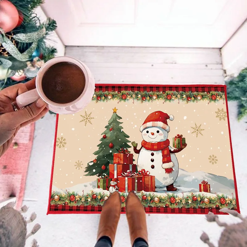 Alfombrilla navideña con diseño de muñeco de nieve para el hogar, tapete para el suelo con árbol de Papá Noel, decoraciones navideñas para el hogar, Feliz Año Nuevo 2024, 2025