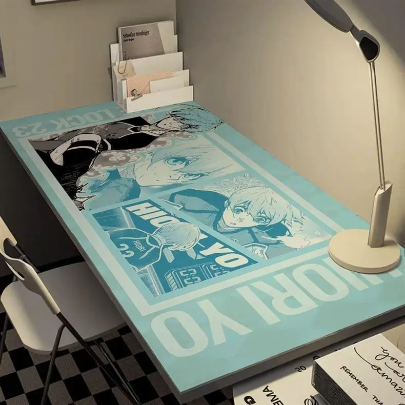 Alfombrilla de ratón para juegos, tapete de teclado antideslizante LargeNon con bloqueo azul, Protector de mesa para escritorio de oficina, yoachi Isagi