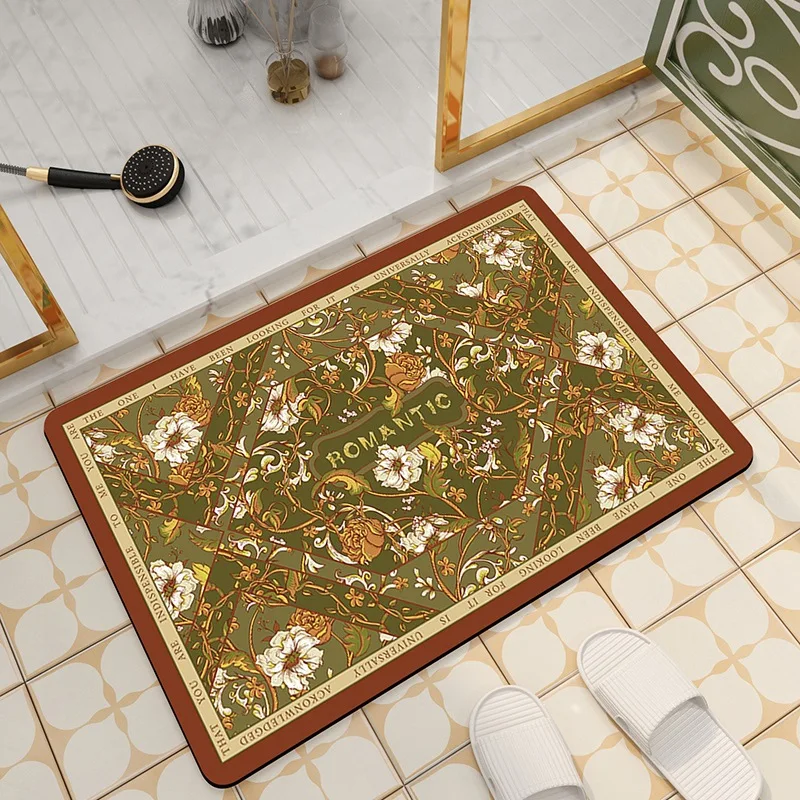 Comprar Alfombrilla de suelo de baño Retro americano, absorbente de agua y secado rápido, alfombrilla para puerta de inodoro, barro de diatomeas, antideslizante