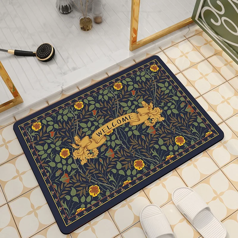 Alfombrilla de suelo de baño Retro americano, absorbente de agua y secado rápido, alfombrilla para puerta de inodoro, barro de diatomeas, antideslizante