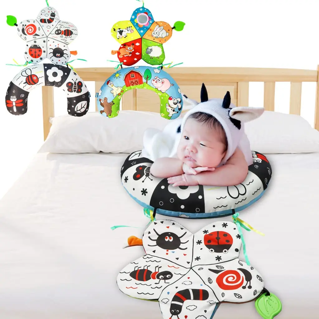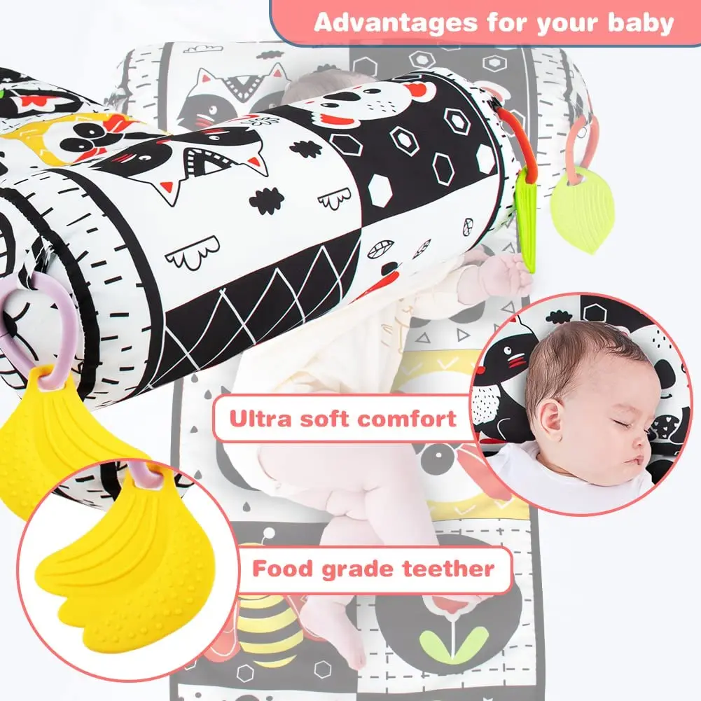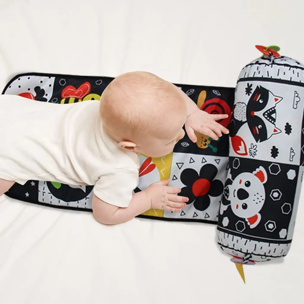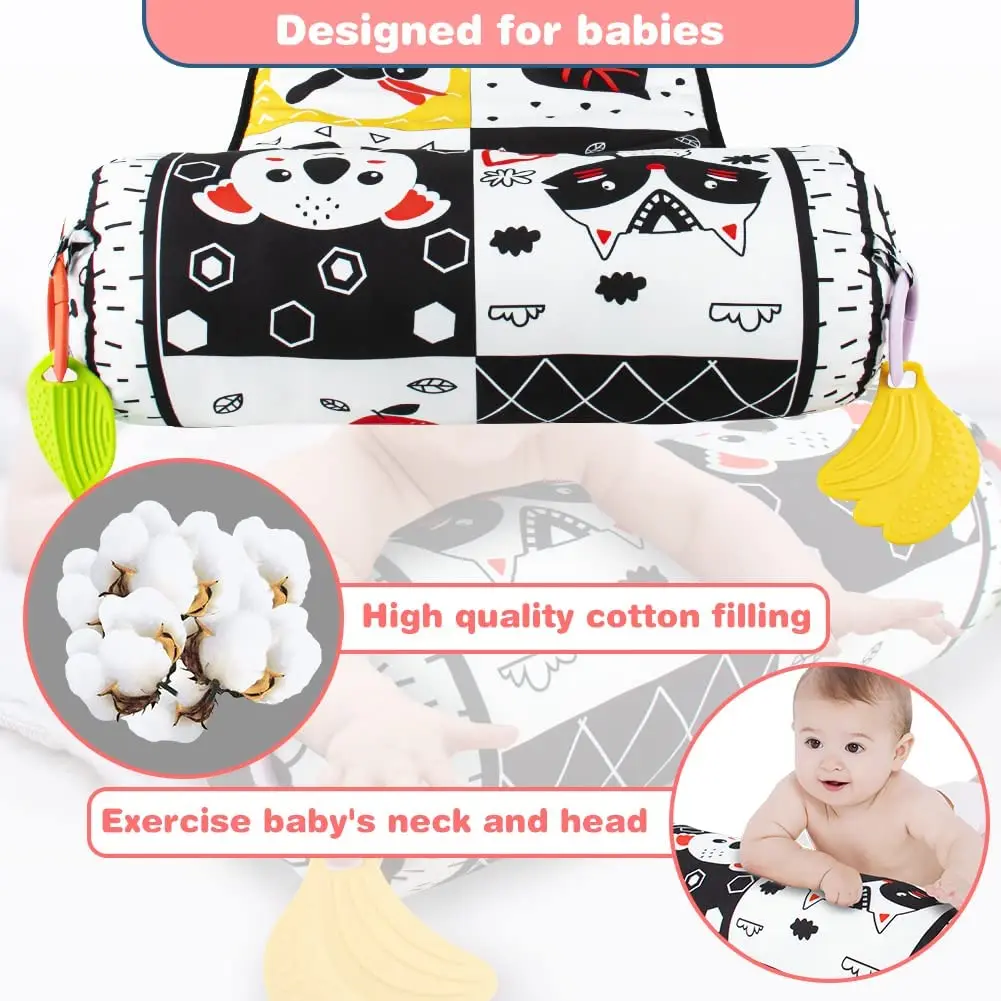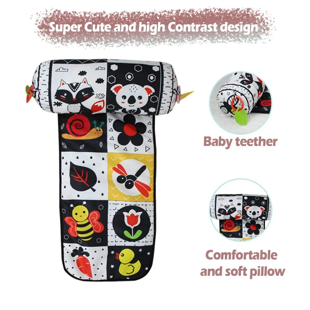 Comprar Almohada y alfombra de juego 2 en 1 para el abdomen, juguete de bebé de alto contraste en blanco y negro con mordedores, visión sensorial