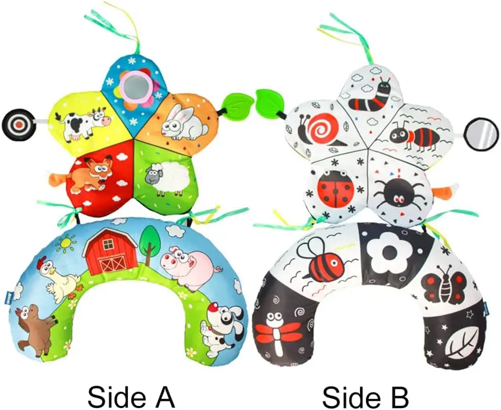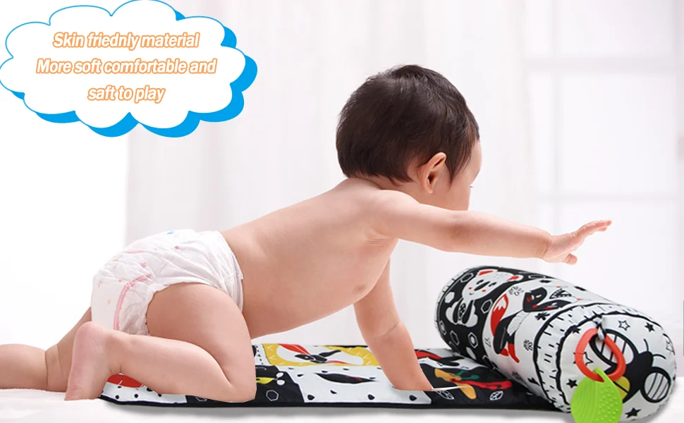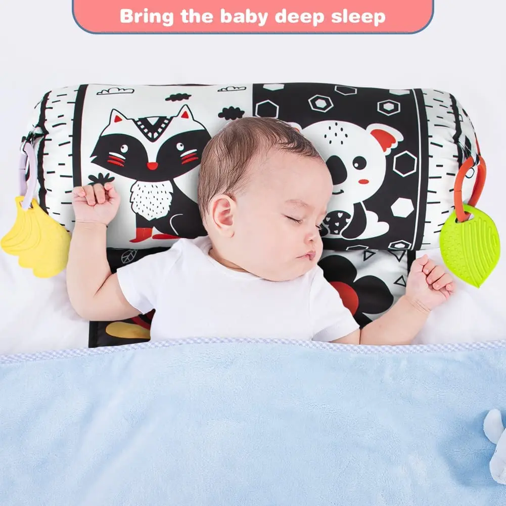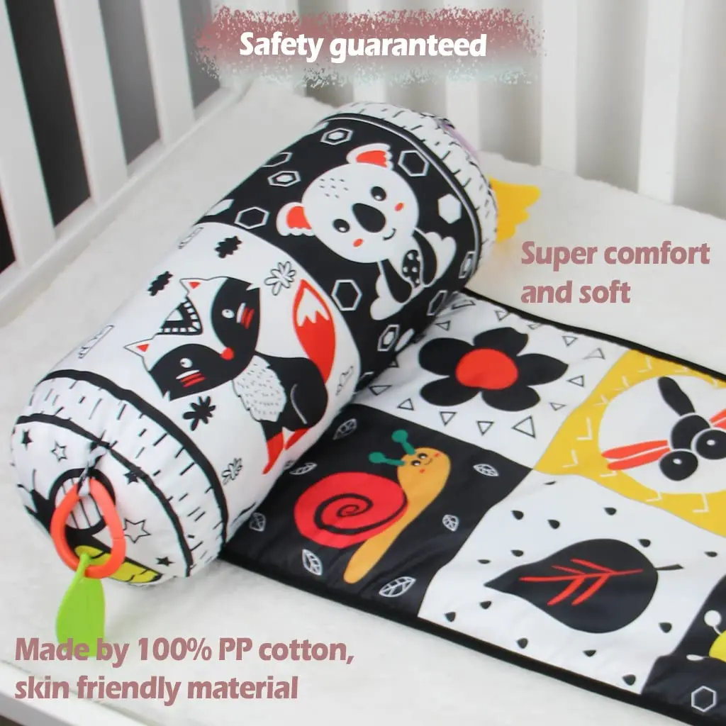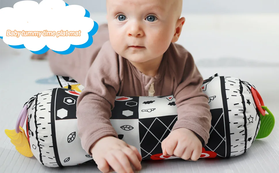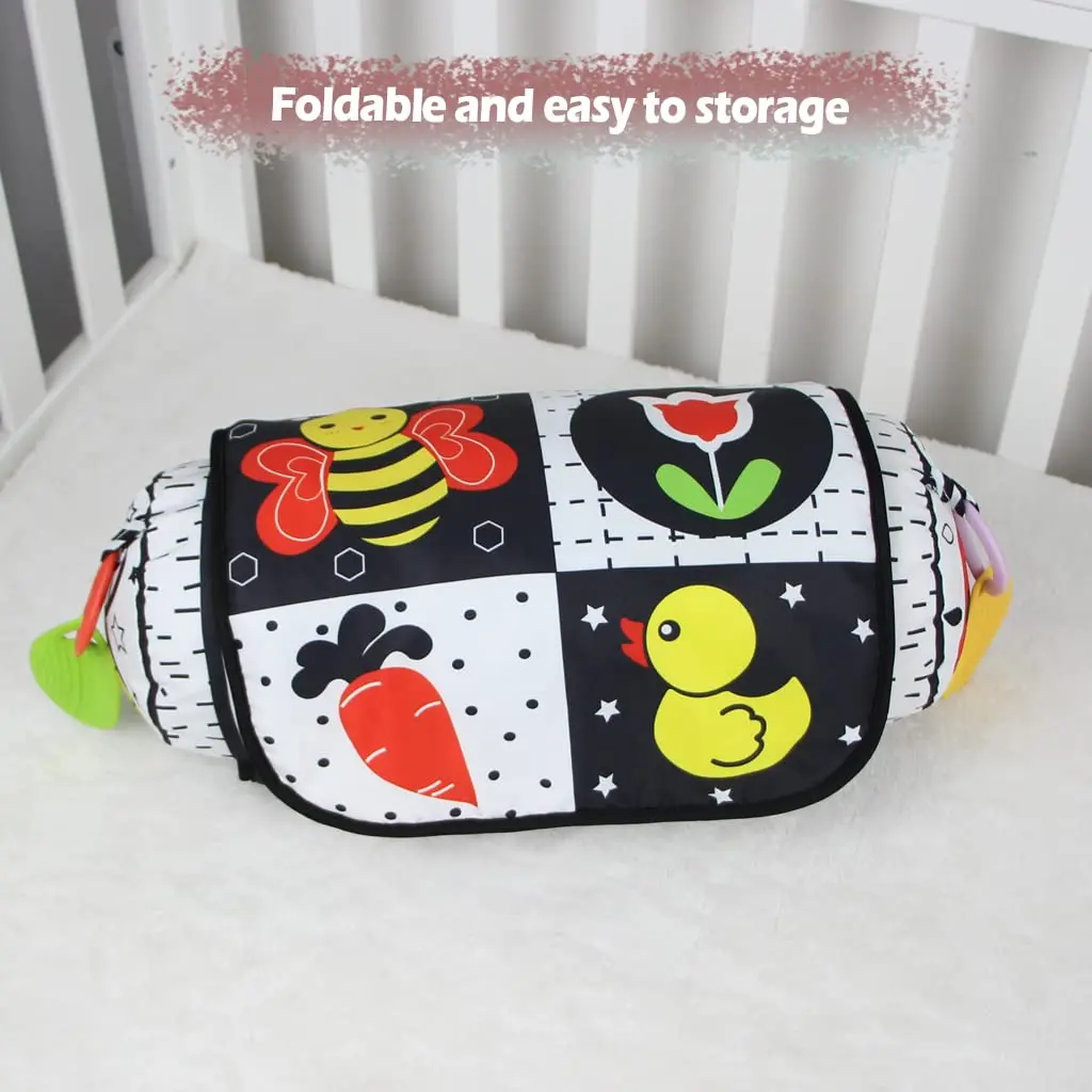 Comprar Almohada y alfombra de juego 2 en 1 para el abdomen, juguete de bebé de alto contraste en blanco y negro con mordedores, visión sensorial