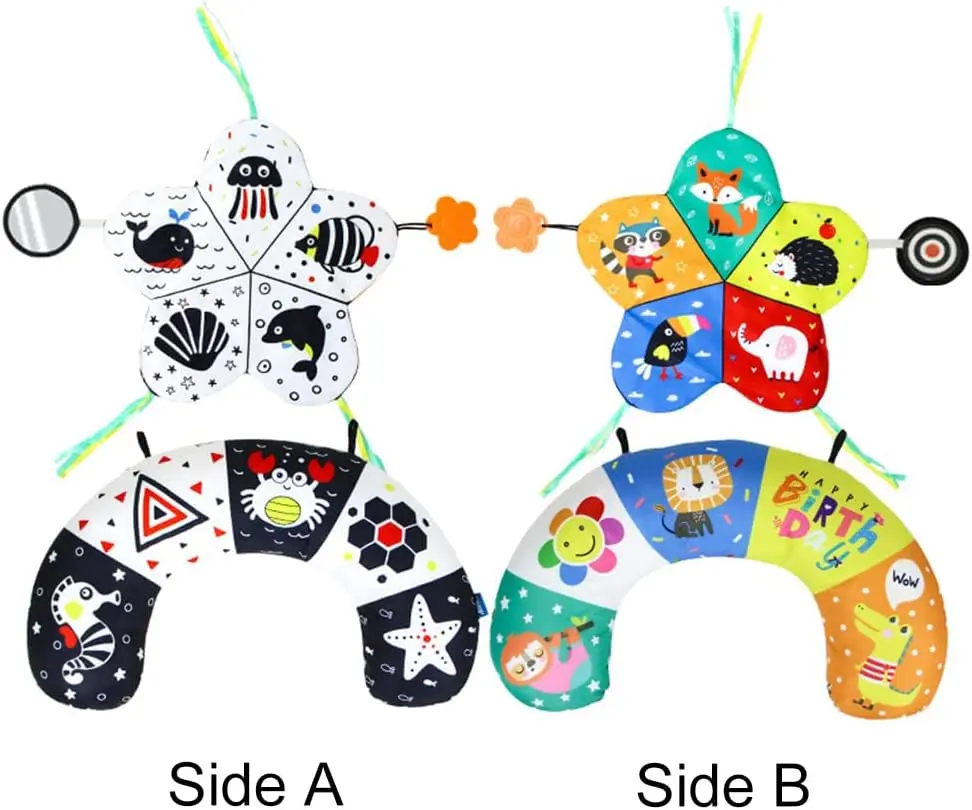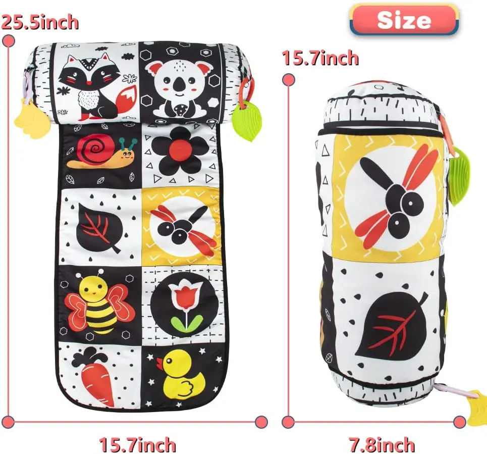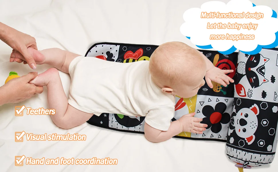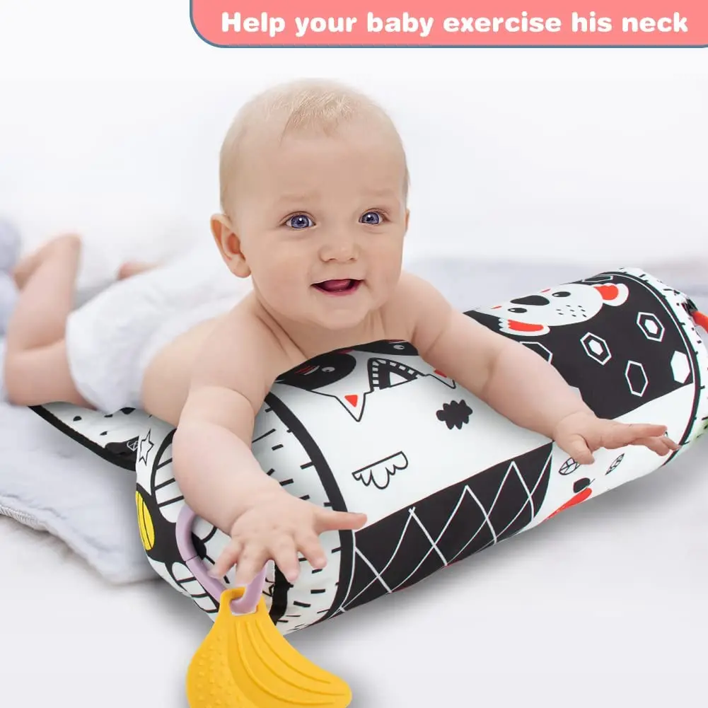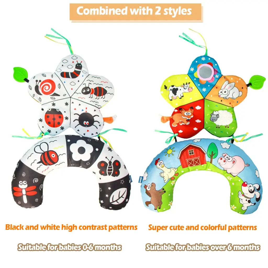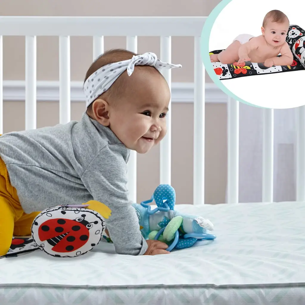 Comprar Almohada y alfombra de juego 2 en 1 para el abdomen, juguete de bebé de alto contraste en blanco y negro con mordedores, visión sensorial