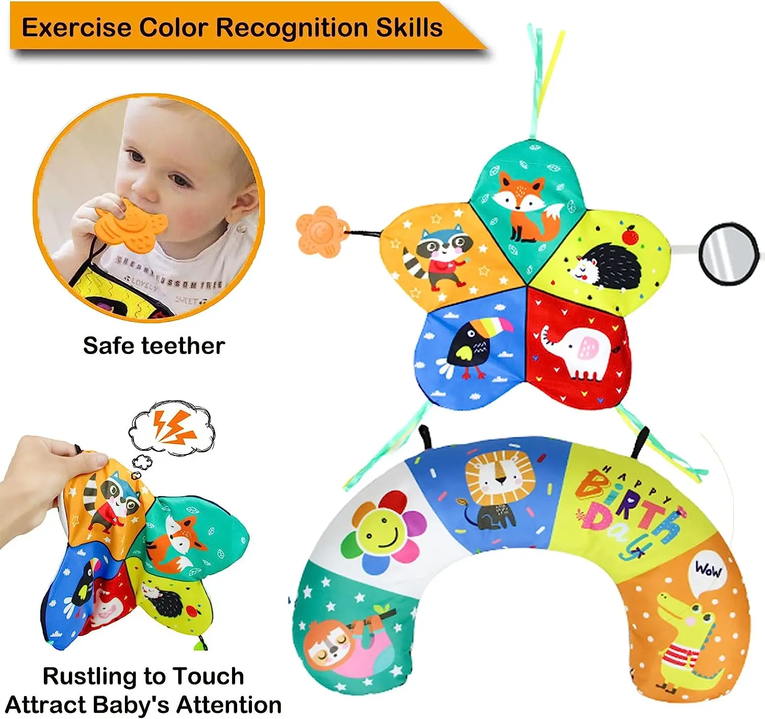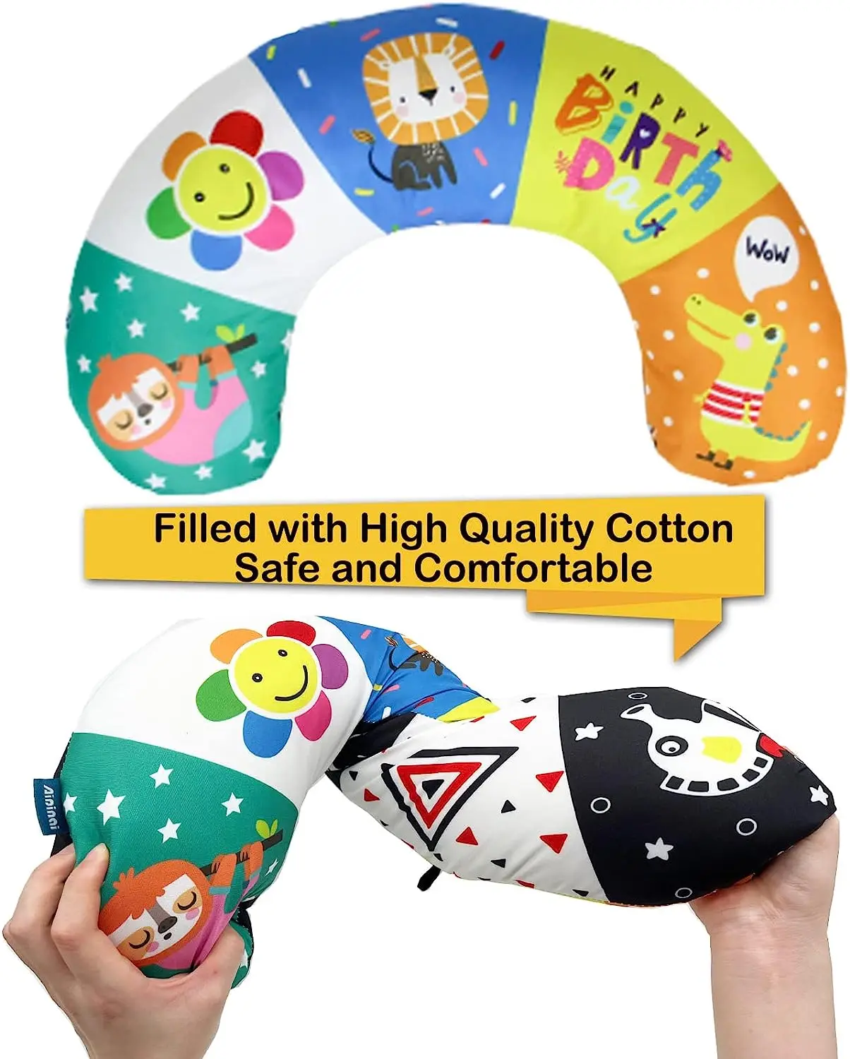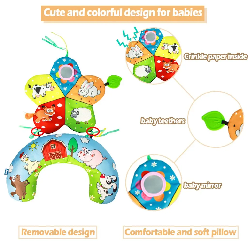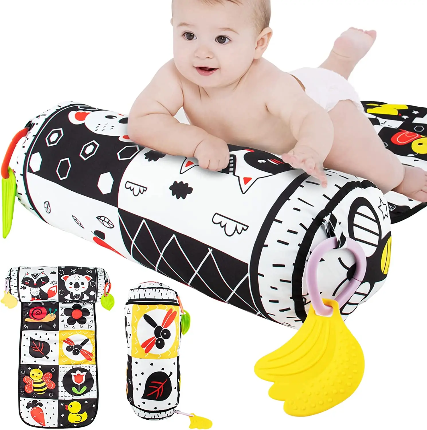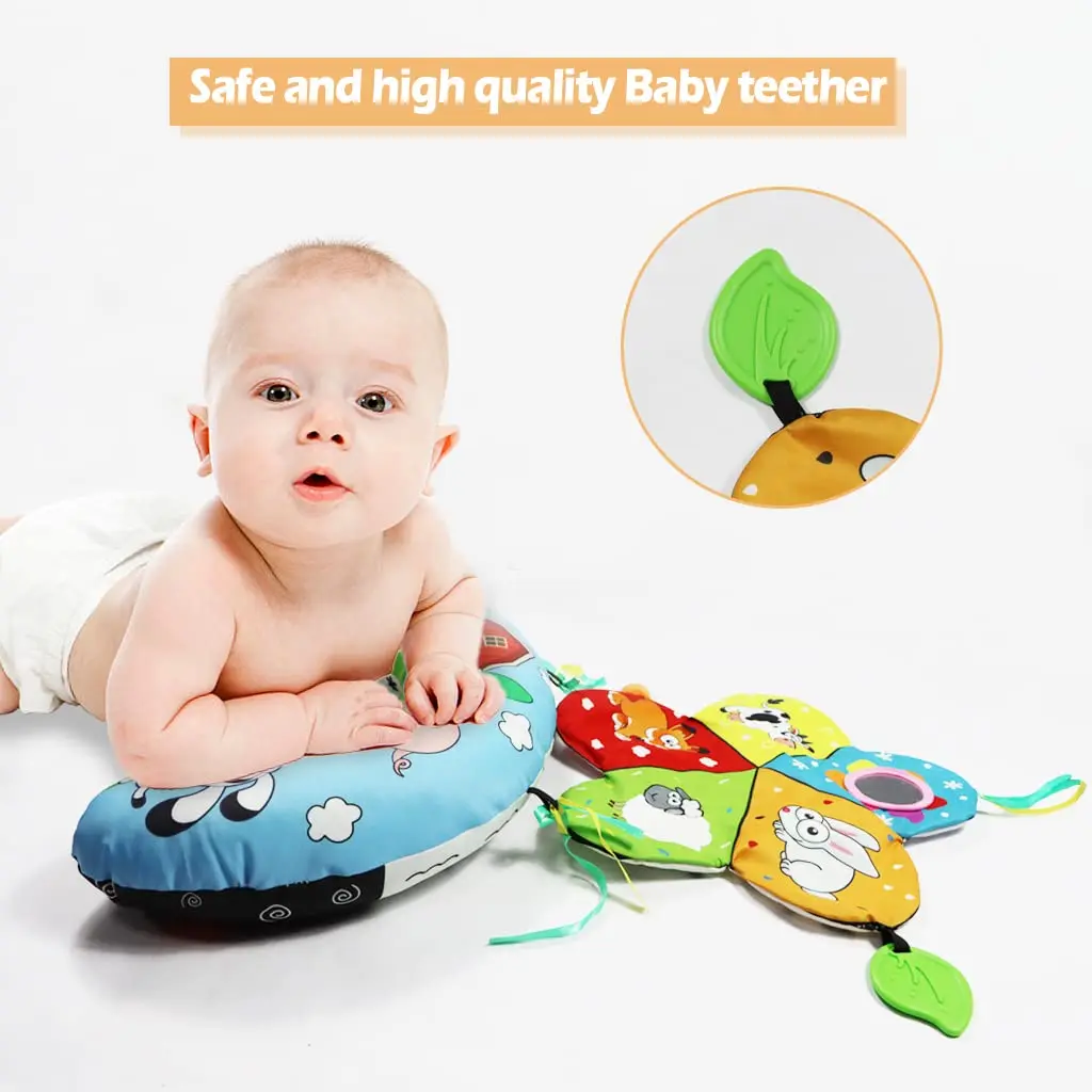 Comprar Almohada y alfombra de juego 2 en 1 para el abdomen, juguete de bebé de alto contraste en blanco y negro con mordedores, visión sensorial