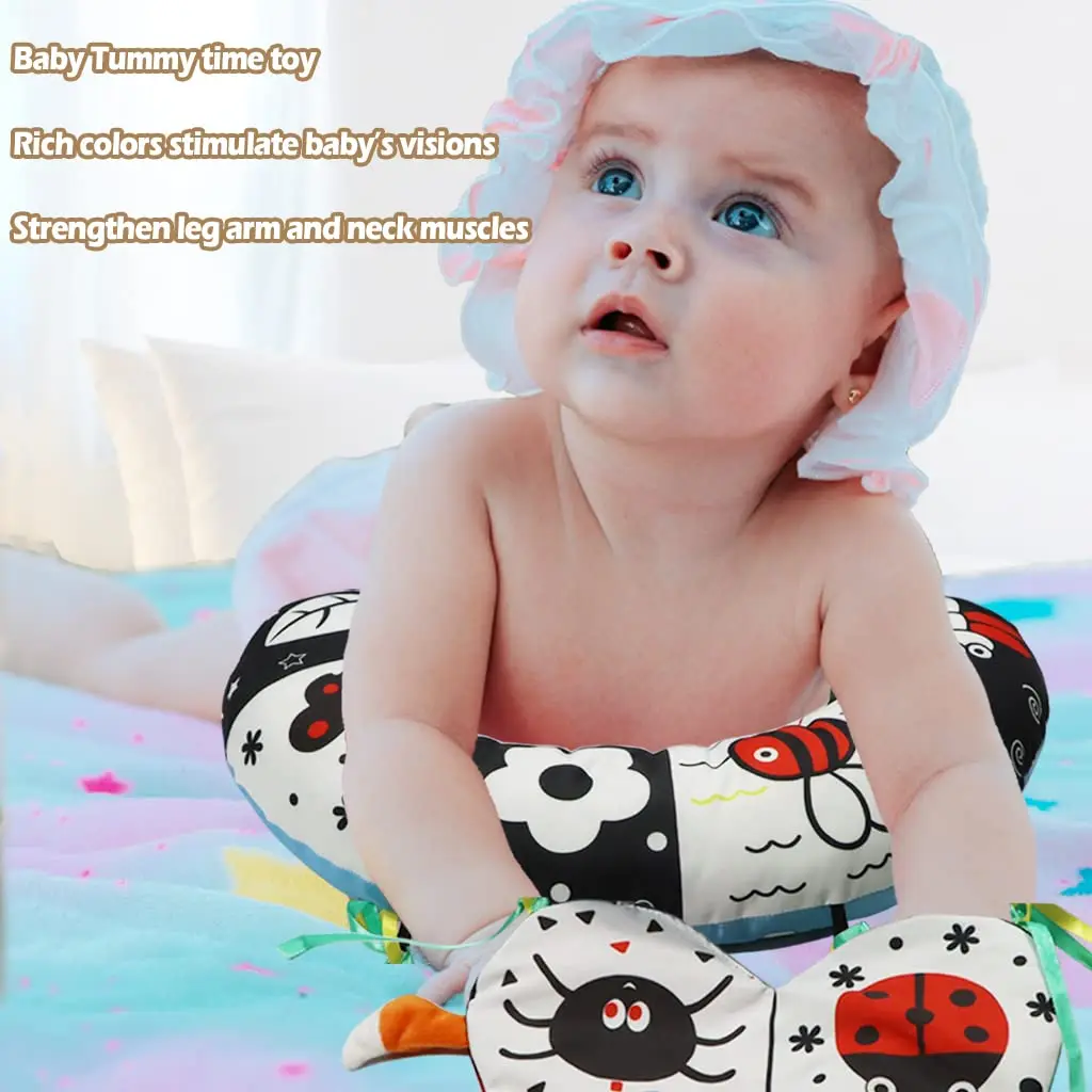 Almohada para bebé, juguete de barriga, almohada tumbada en blanco y negro, juguete sensorial de doble cara de alto contraste, almohada de entrenamiento para recién nacido