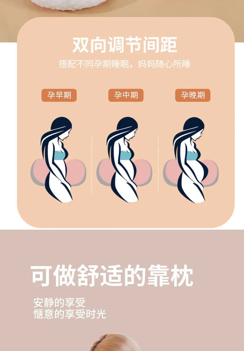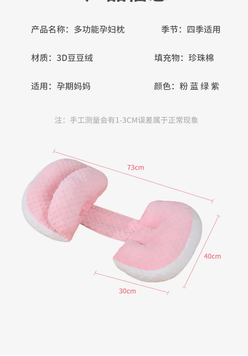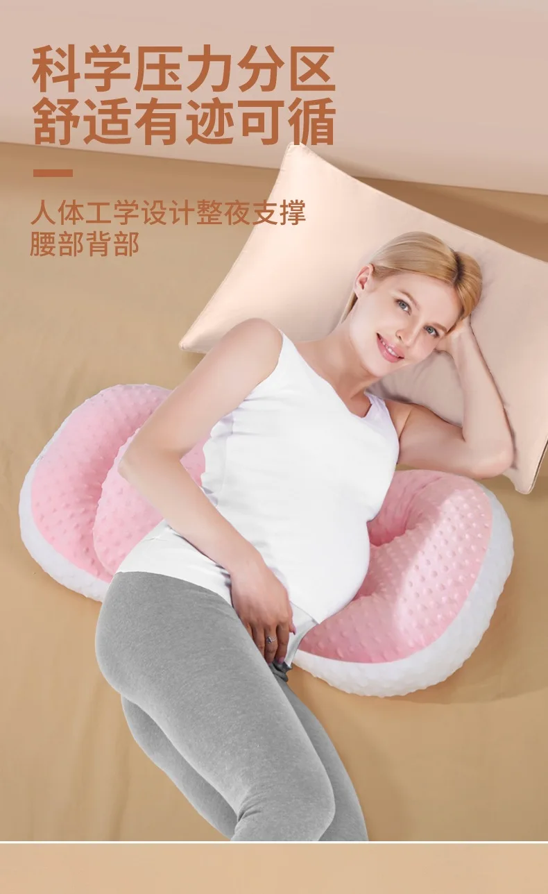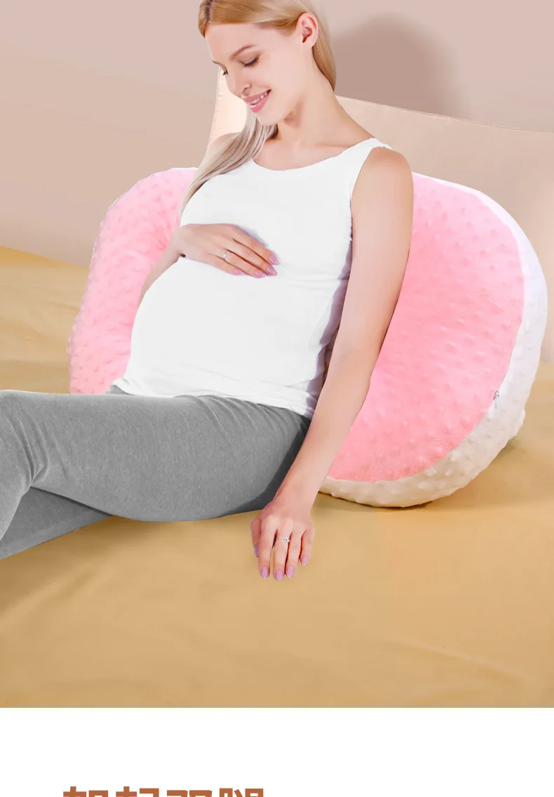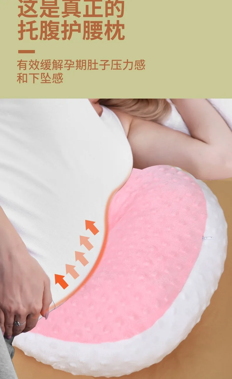 Almohada de apoyo para el embarazo, cojín de maternidad para dormir lateral con soporte para la cintura y el vientre, tela de terciopelo de frijol suave, anticolapso