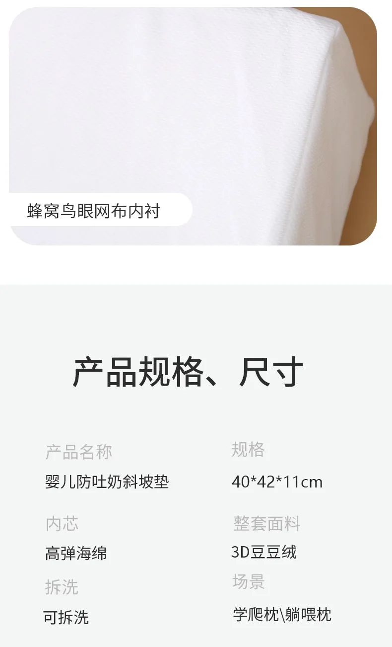 Almohada de bebé para leche antiescupir, cojín de soporte para la cabeza de recién nacido antideslizante transpirable con diseño de pendiente, almohada de espuma viscoelástica infantil