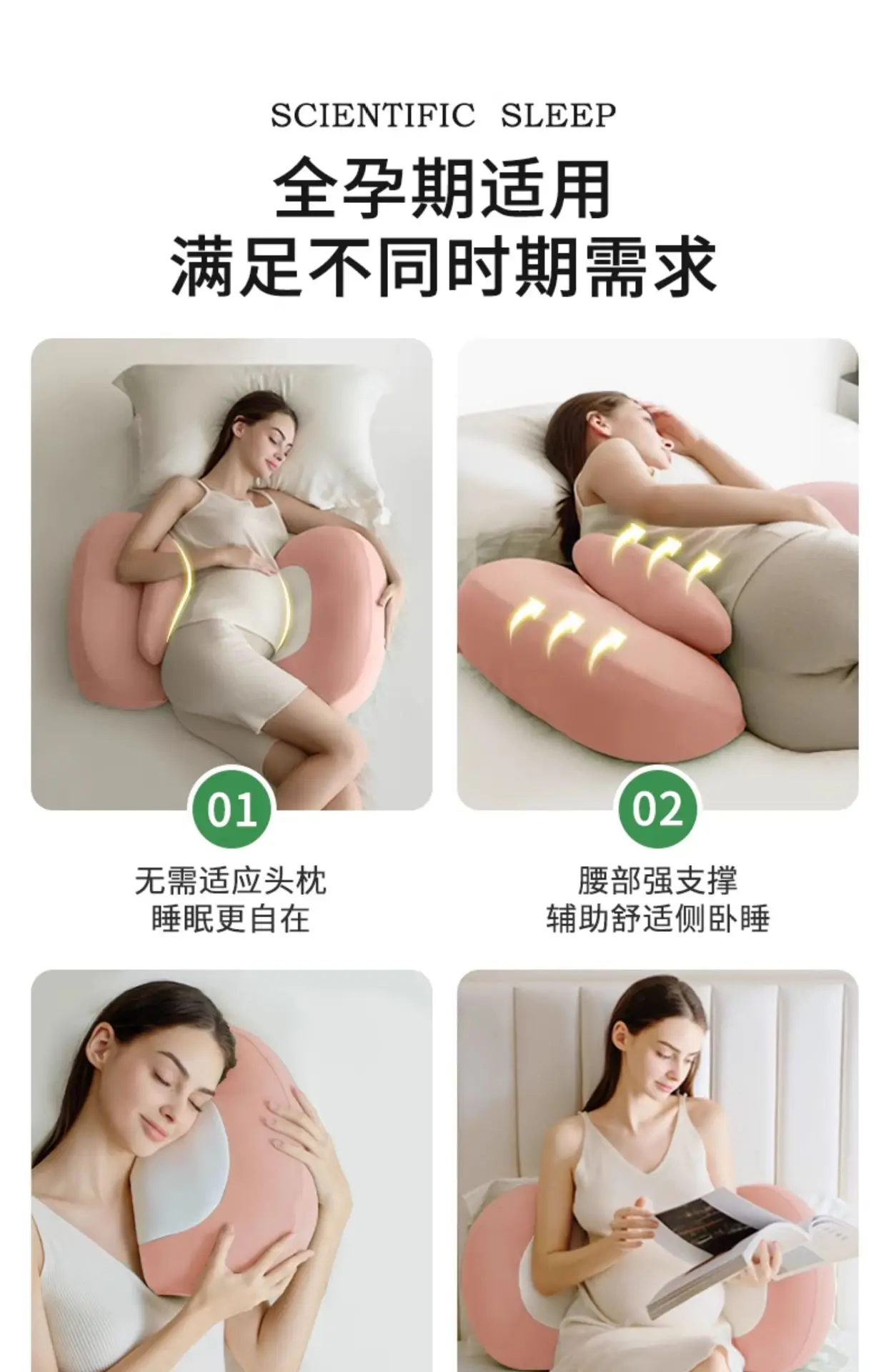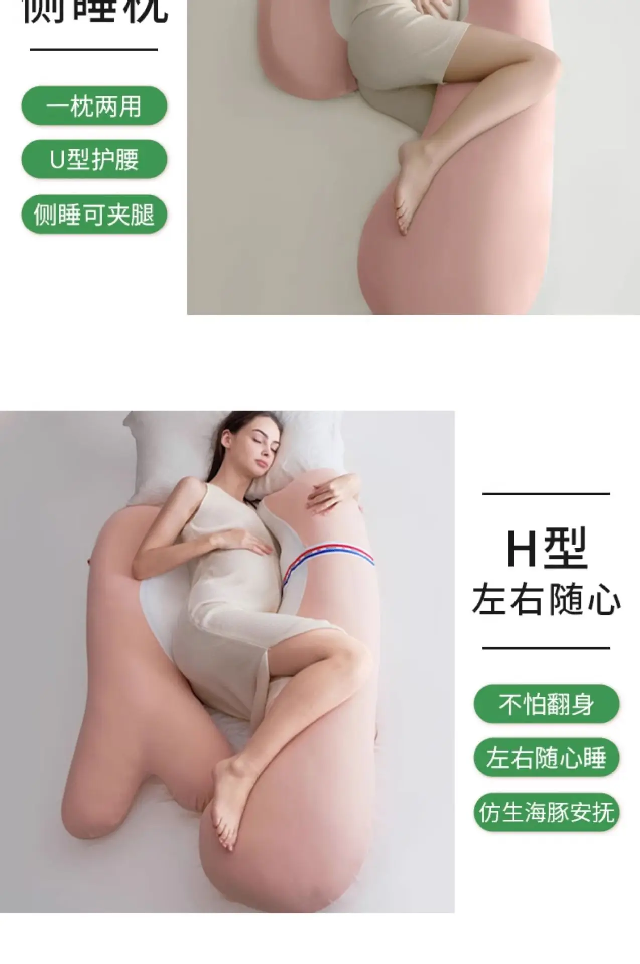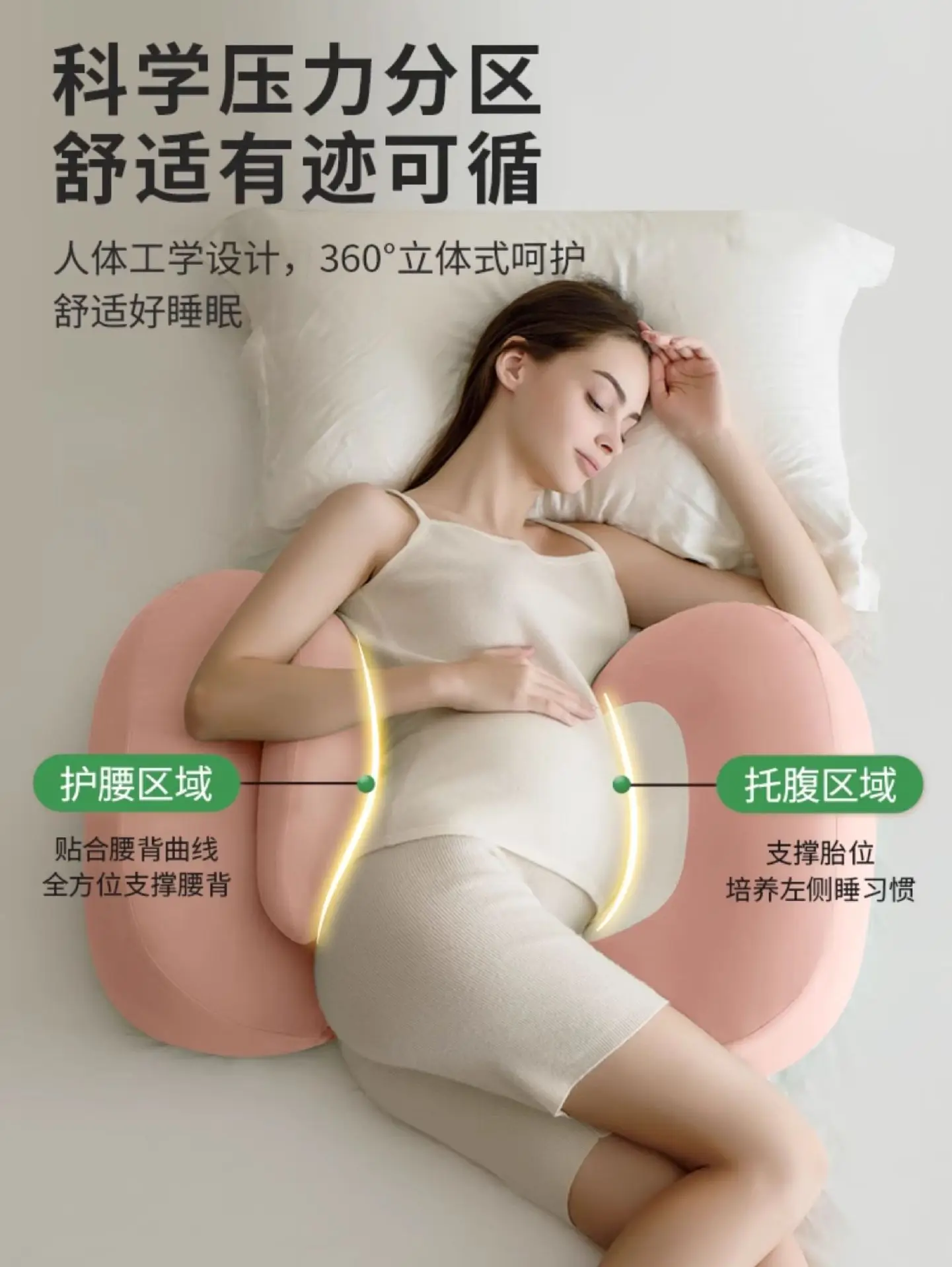 Almohada para dormir lateral de embarazo en forma de delfín, cojín de soporte para el vientre de maternidad en forma de U con 30 ° Pendiente y Espuma Transpirable