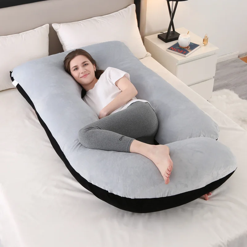 Almohada para embarazadas, almohada de lactancia tipo J de terciopelo de cristal, soporte Abdominal, almohada de protección de cintura para dormir lateral central