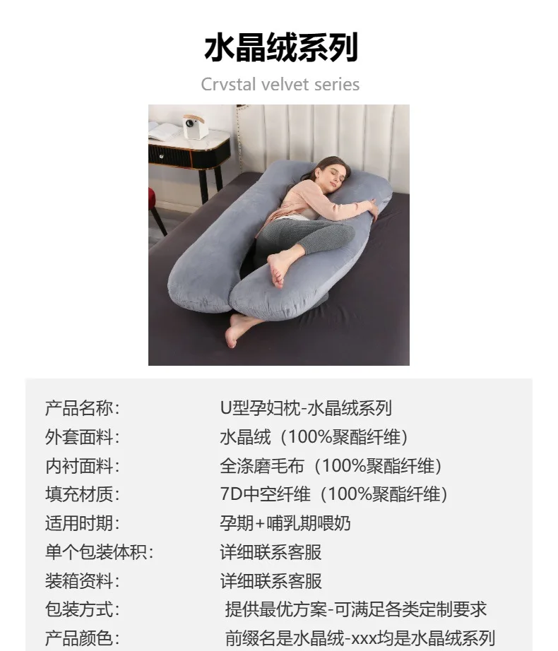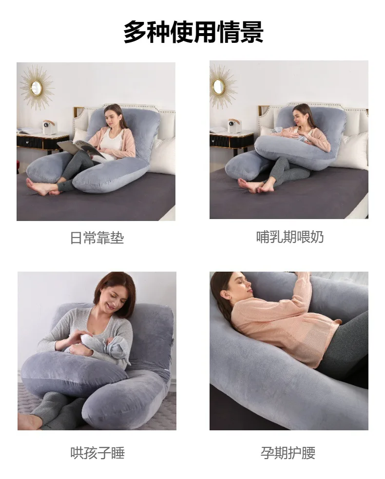 Almohada para embarazadas, almohada de terciopelo de cristal en forma de U para embarazo, soporte para la cintura, almohada para dormir lateral, núcleo corporal para embarazo