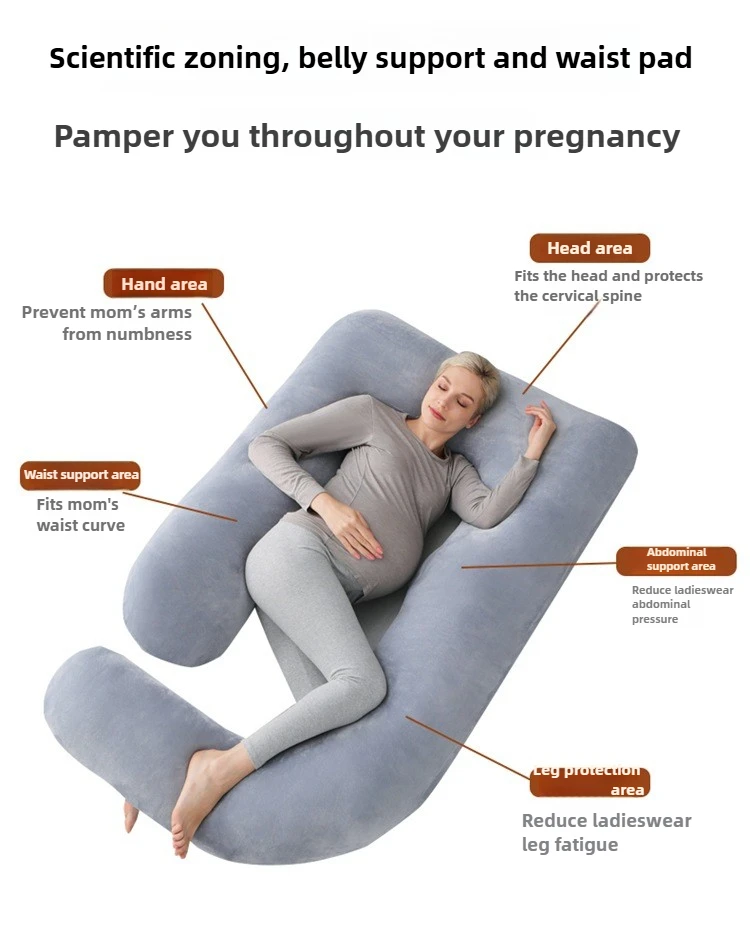 Almohada de maternidad ajustable en forma de U para mujeres embarazadas, soporte de lactancia multifuncional, cojín lateral lavable para dormir