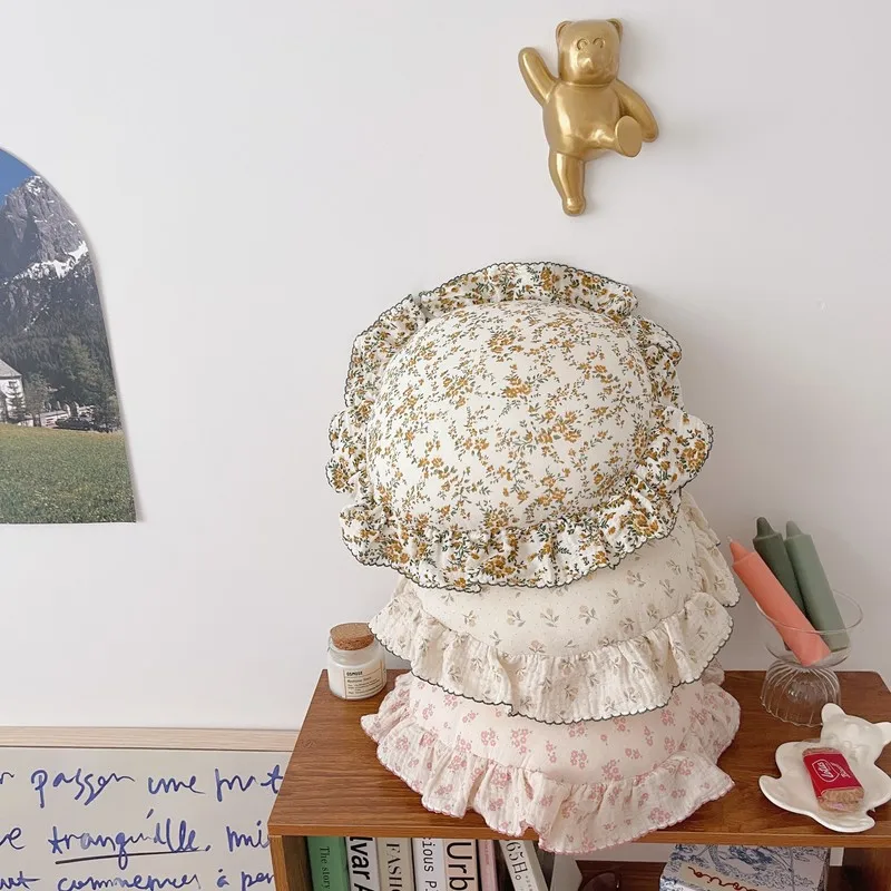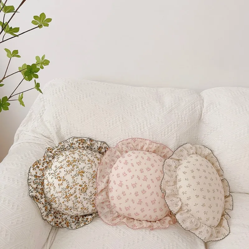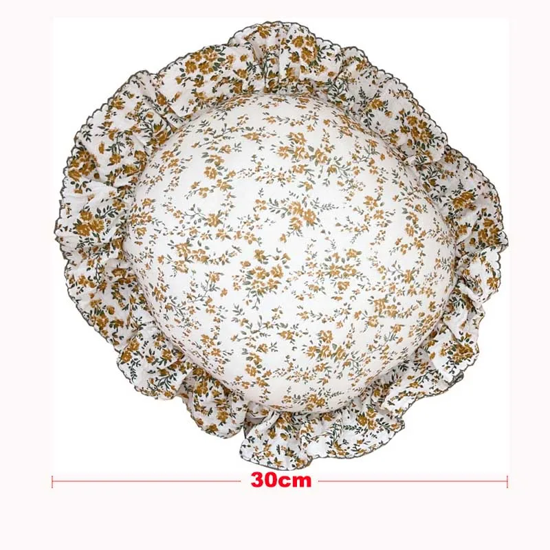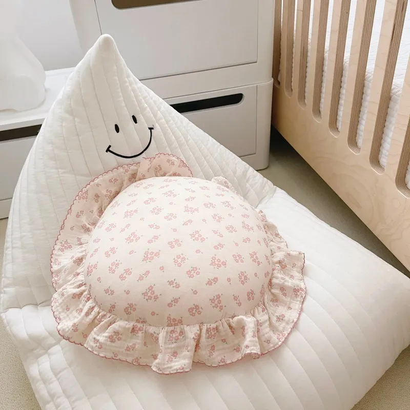 Comprar Almohada redonda de algodón Floral coreano para bebé con volantes, cojín de muselina para niños, ropa de cama para bebé recién nacido, cojines para habitación