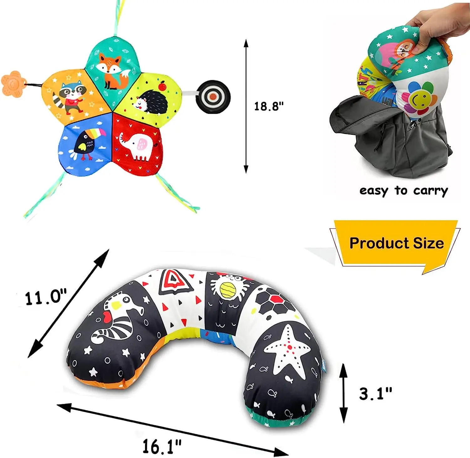 【Fantástico juguete para el tiempo de la barriga del bebé】 Almohada de doble cara para el tiempo de la barriga con patrón de alto contraste. A los bebés les encanta mirar todas las cosas en alto contraste. Las imágenes en blanco y negro de los mordedores de espejo y las diferentes texturas son atractivas y alientan al bebé recién nacido a QUERER estar boca abajo. Los recién nacidos de 0 a 6 meses estarán obsesionados con el lado blanco-negro y los bebés de más de 6 meses estarán enamorados de la parte colorida. Las imágenes claras y atractivas de alto contraste ayudan a fortalecer la visión. Recién nacido 0 3 meses desarrollo cerebral.