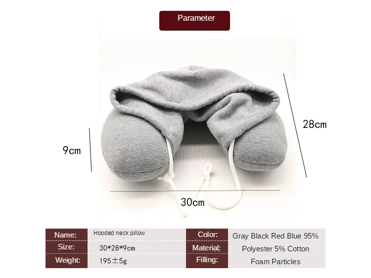 Nombre: Almohada en forma de U con capucha