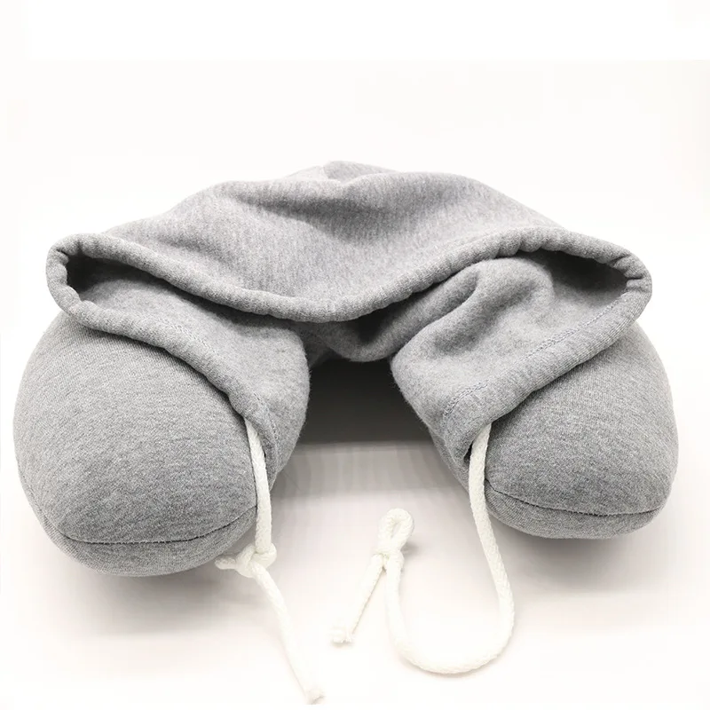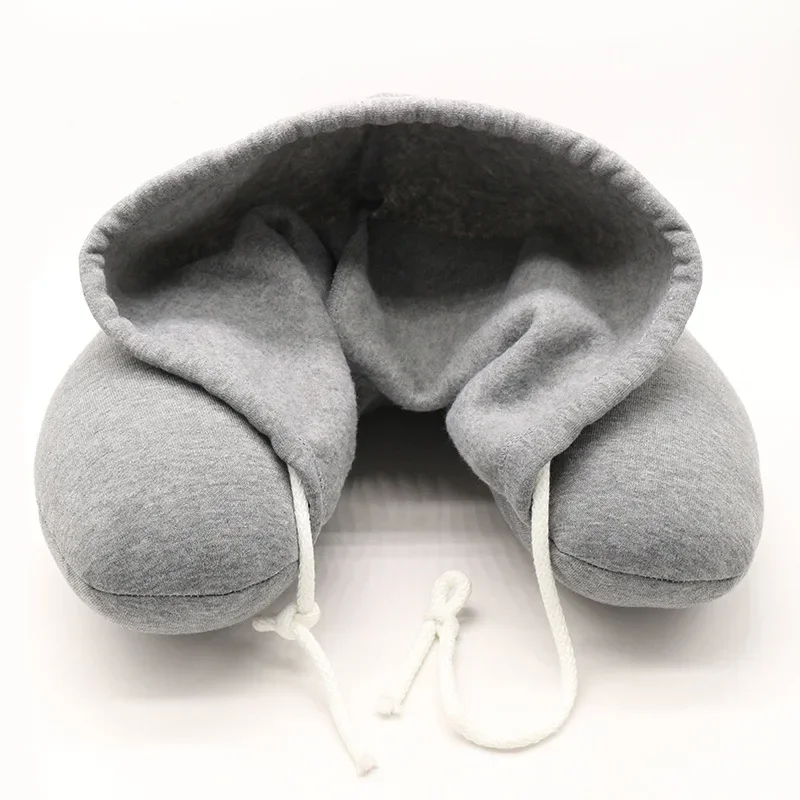 Comprar Almohada de viaje con capucha para oficina, protección del cuello en forma de U, almohada para siesta, almohada para asiento de coche con sombrero, espuma viscoelástica ligera y portátil