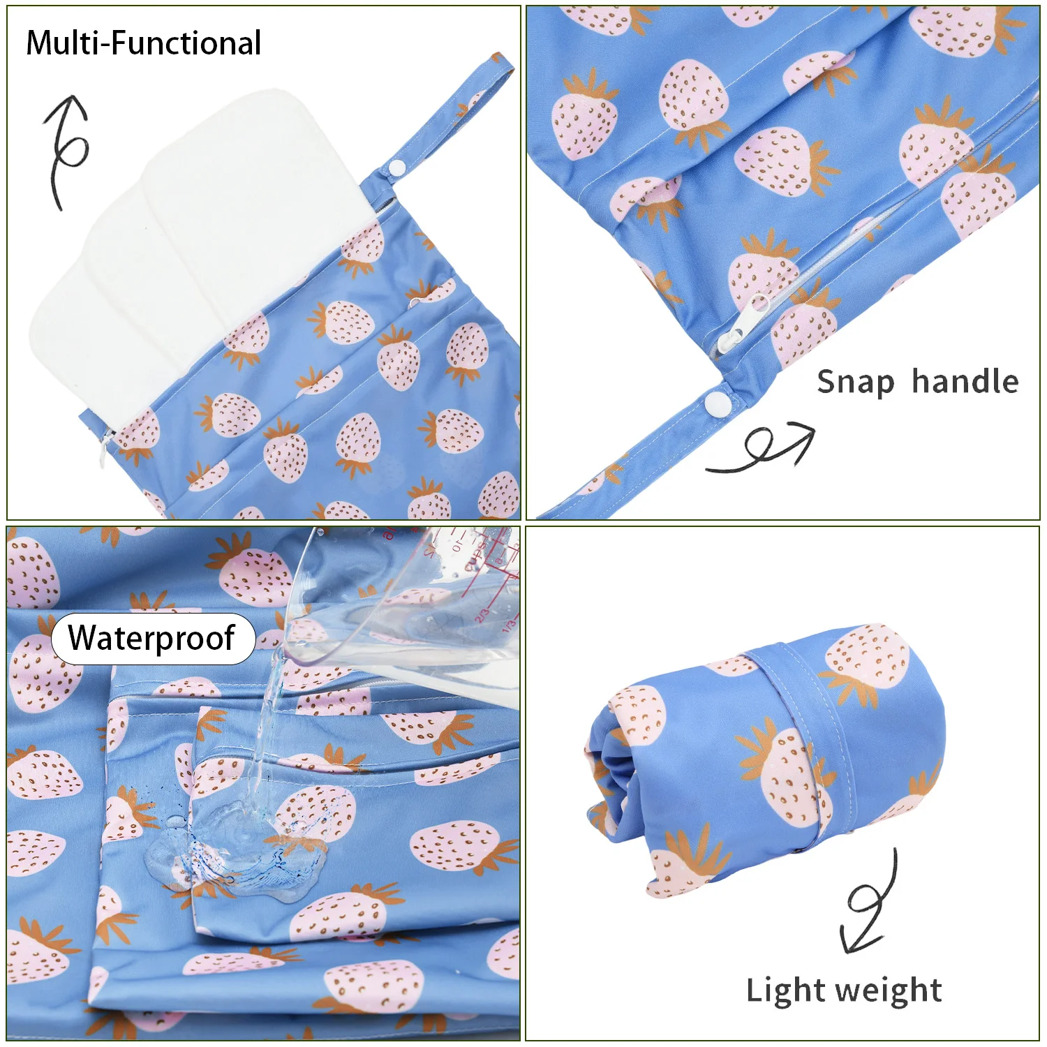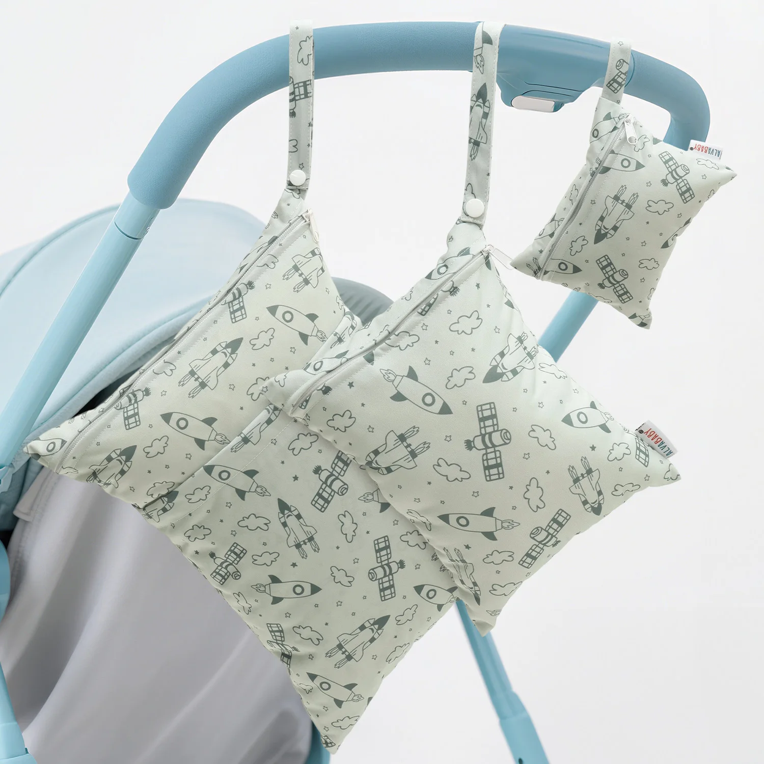 Moda, Reutilizable, Impermeable, Alta calidad:Un diseño atractivo y atractivo.Las bolsas ALVABABY están hechas de 100% poliéster impermeable, coloque los pañales de tela sucia en una bolsa húmeda.Viene conSNAPmanijapara transportarlo o sujetarlo fácilmente a su bolsa de pañales o cochecito.