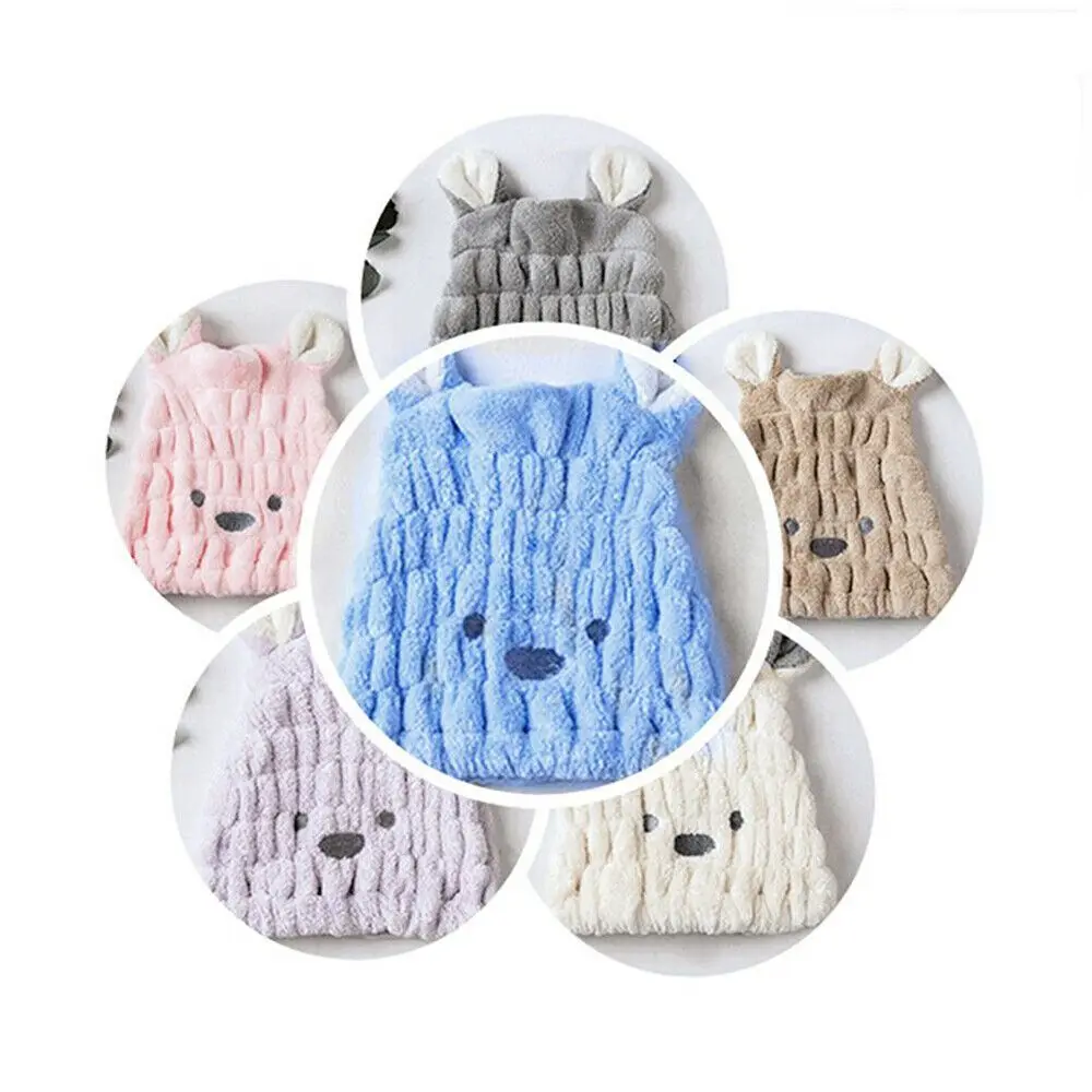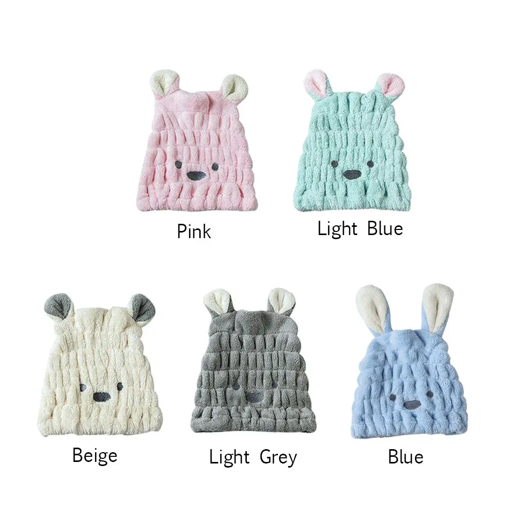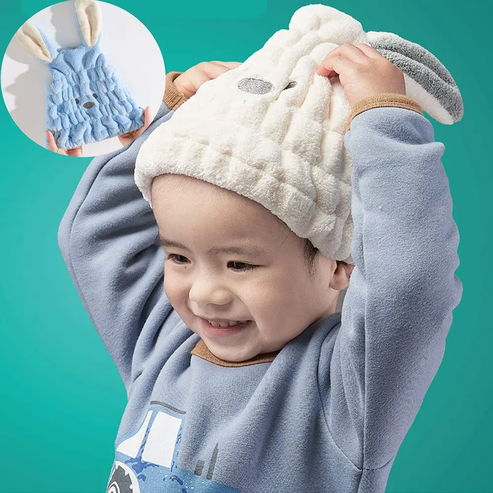 Tamaño: 25x30cm/9,84x11.8”.Gorro de ducha de pelo seco de conejo con orejas largas de dibujos animados, gorro de ducha para niños, nuevo diseño, suave, transpirable y absorbente