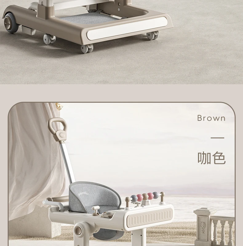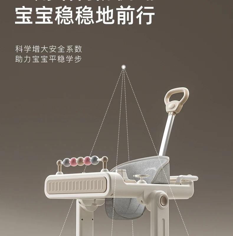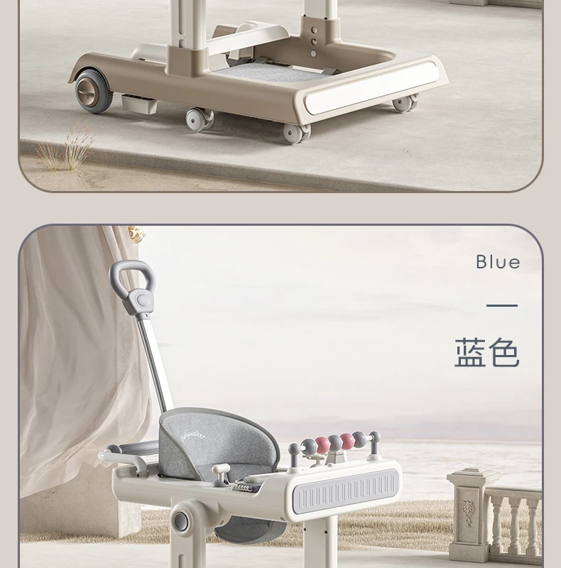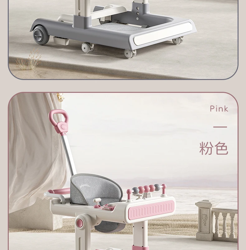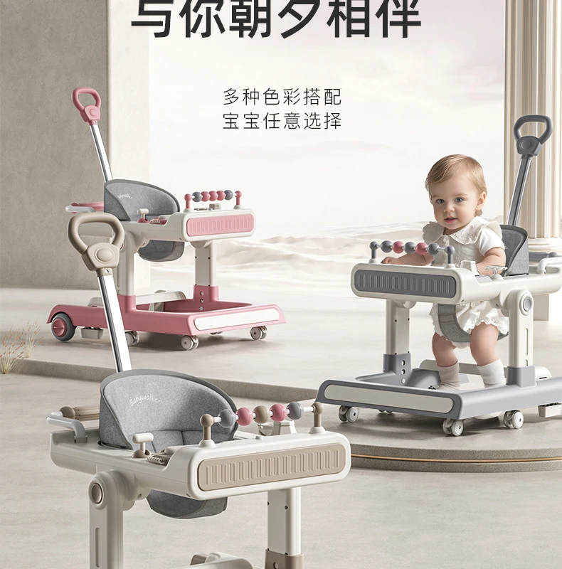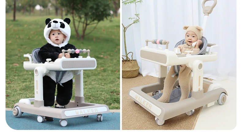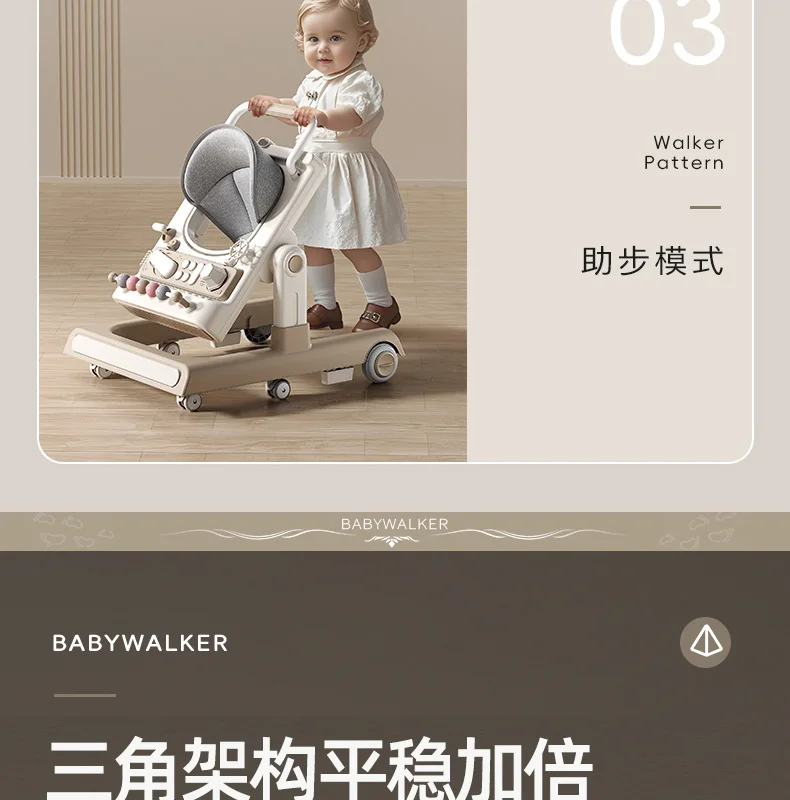 Andador antideslizante para bebé, carrito de empuje para sentarse a pie, marco triangular estable con crucero de aprendizaje seguro de altura de 3 posiciones multifuncional