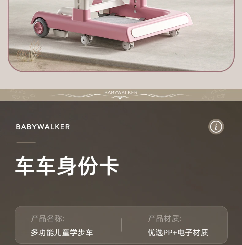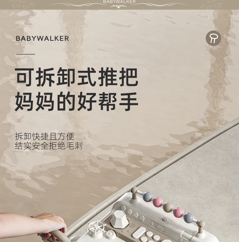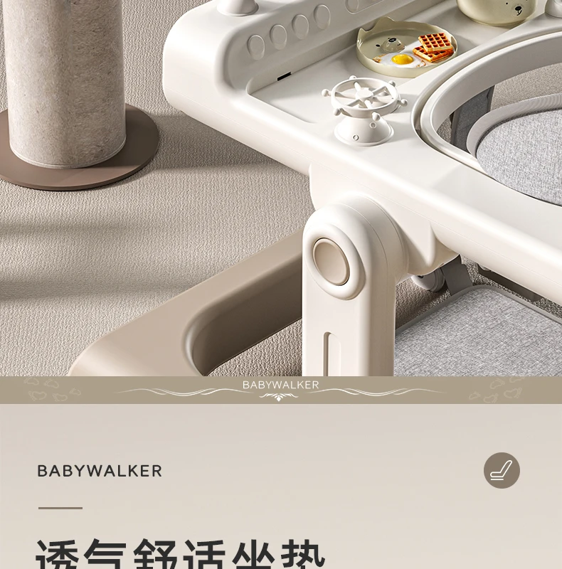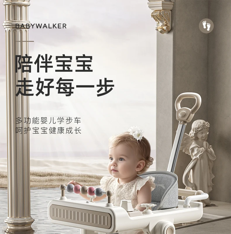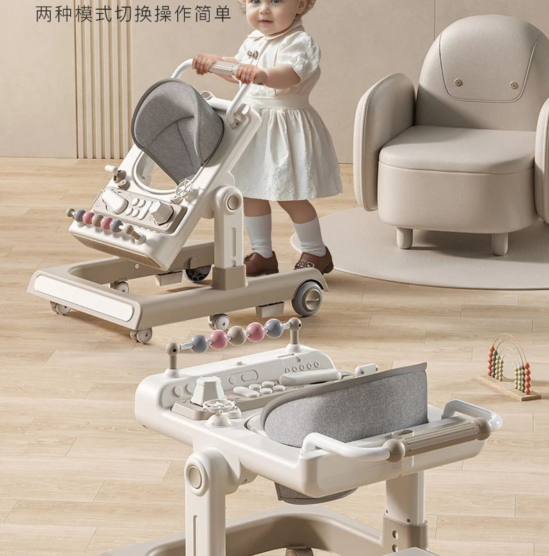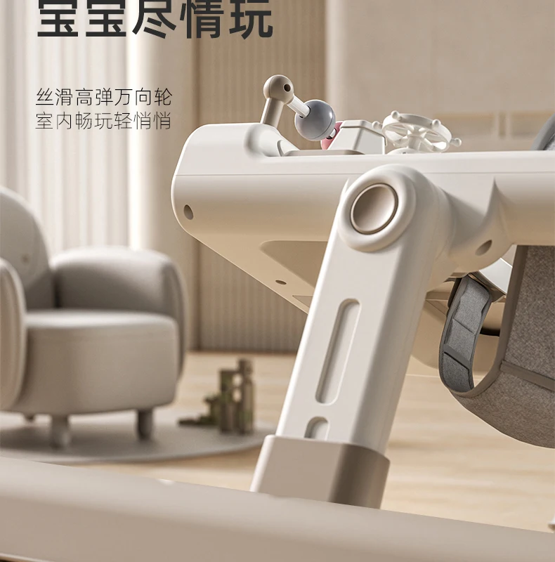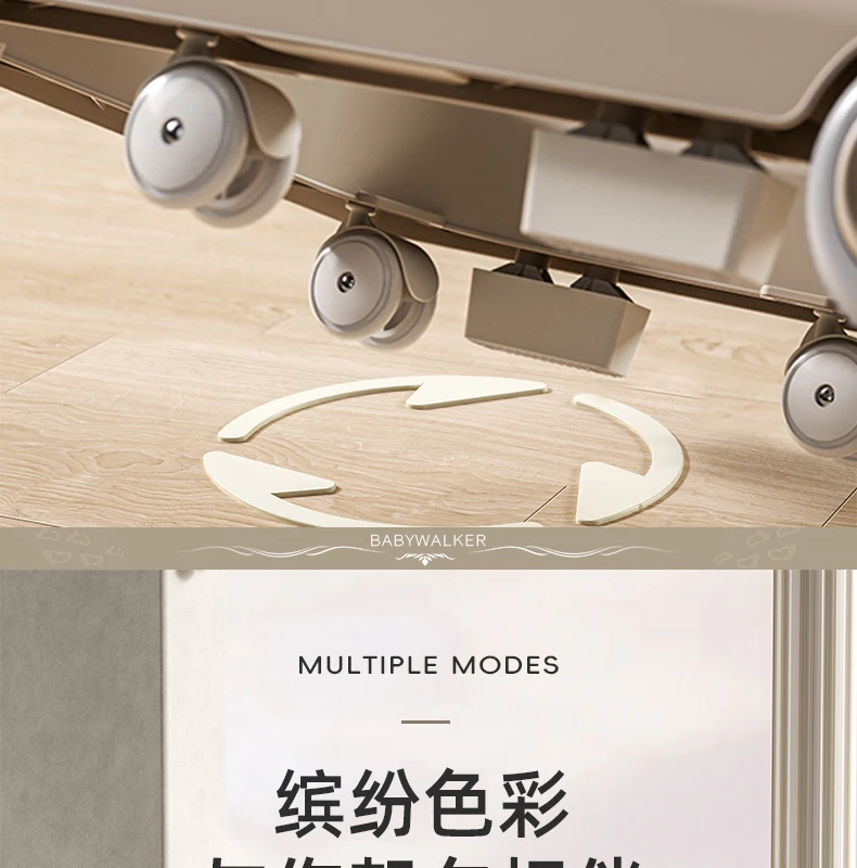Andador antideslizante para bebé, carrito de empuje para sentarse a pie, marco triangular estable con crucero de aprendizaje seguro de altura de 3 posiciones multifuncional