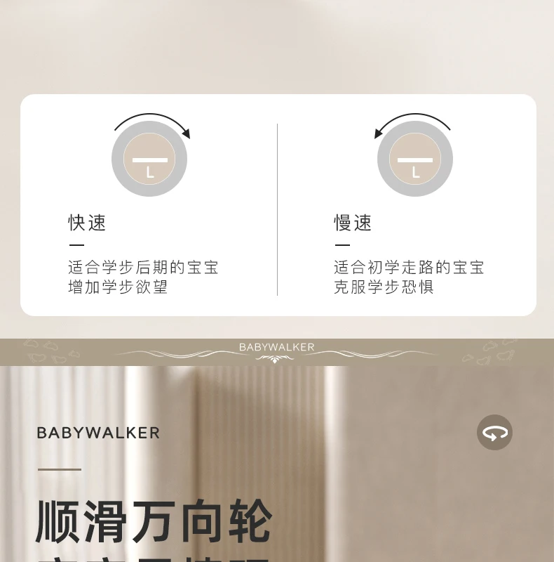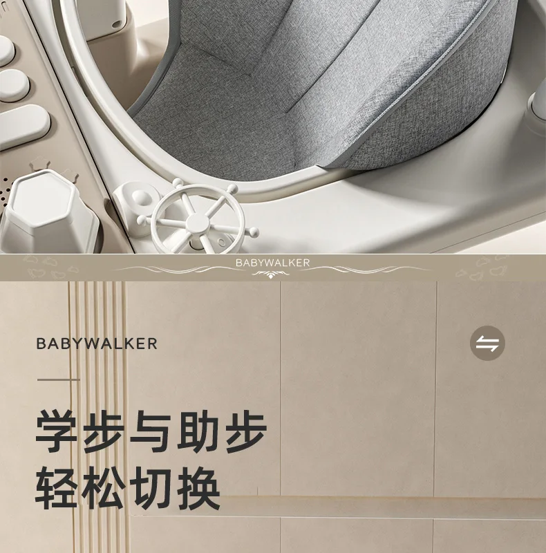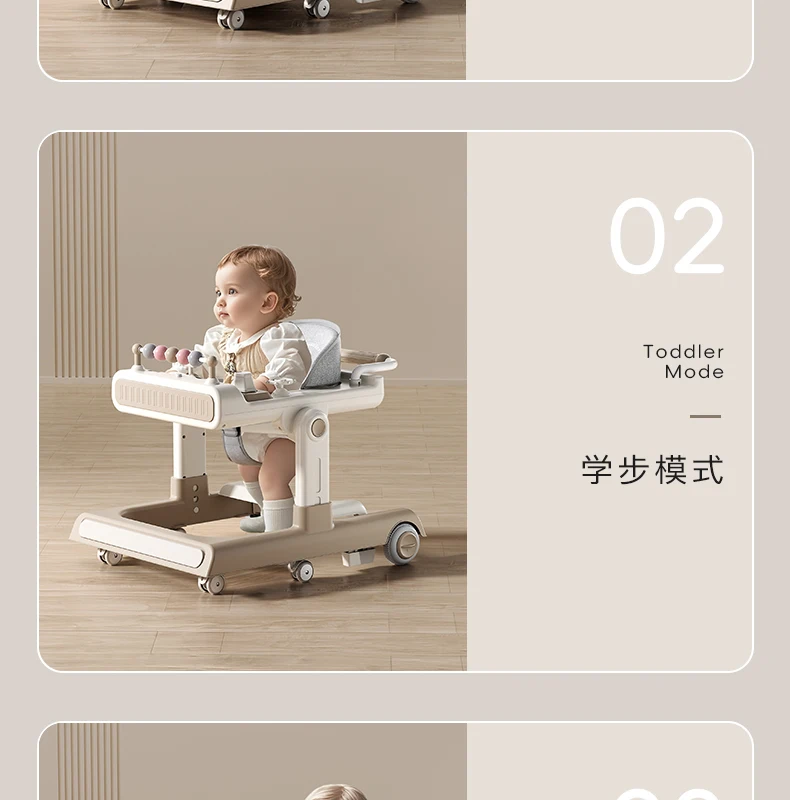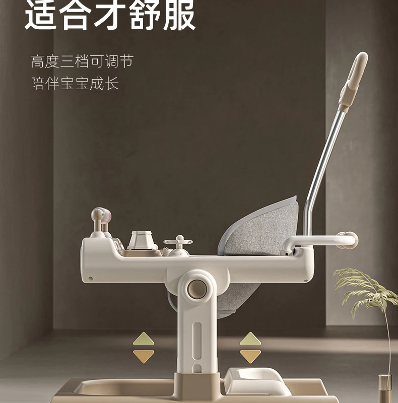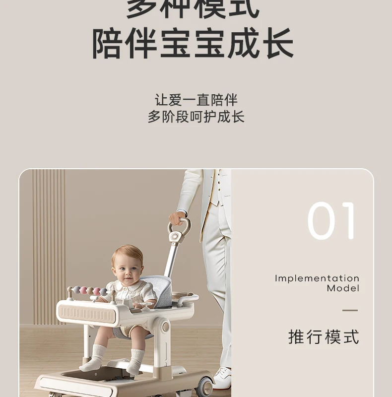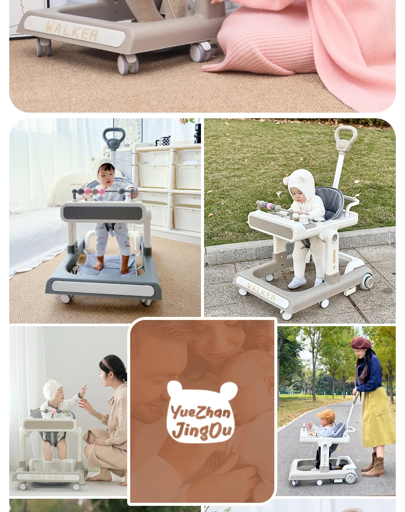 Andador antideslizante para bebé, carrito de empuje para sentarse a pie, marco triangular estable con crucero de aprendizaje seguro de altura de 3 posiciones multifuncional