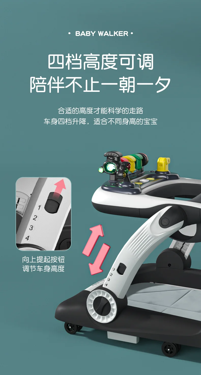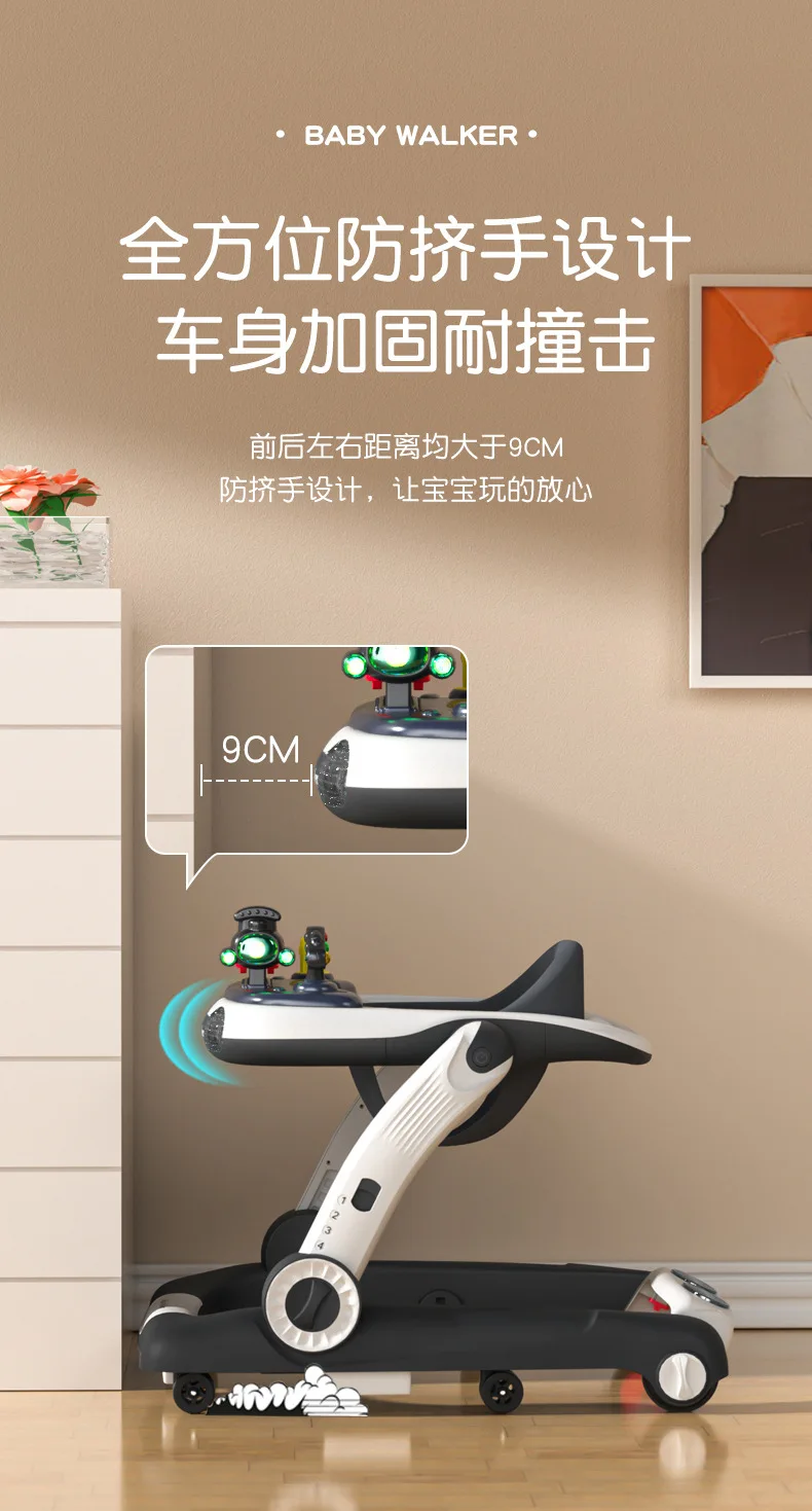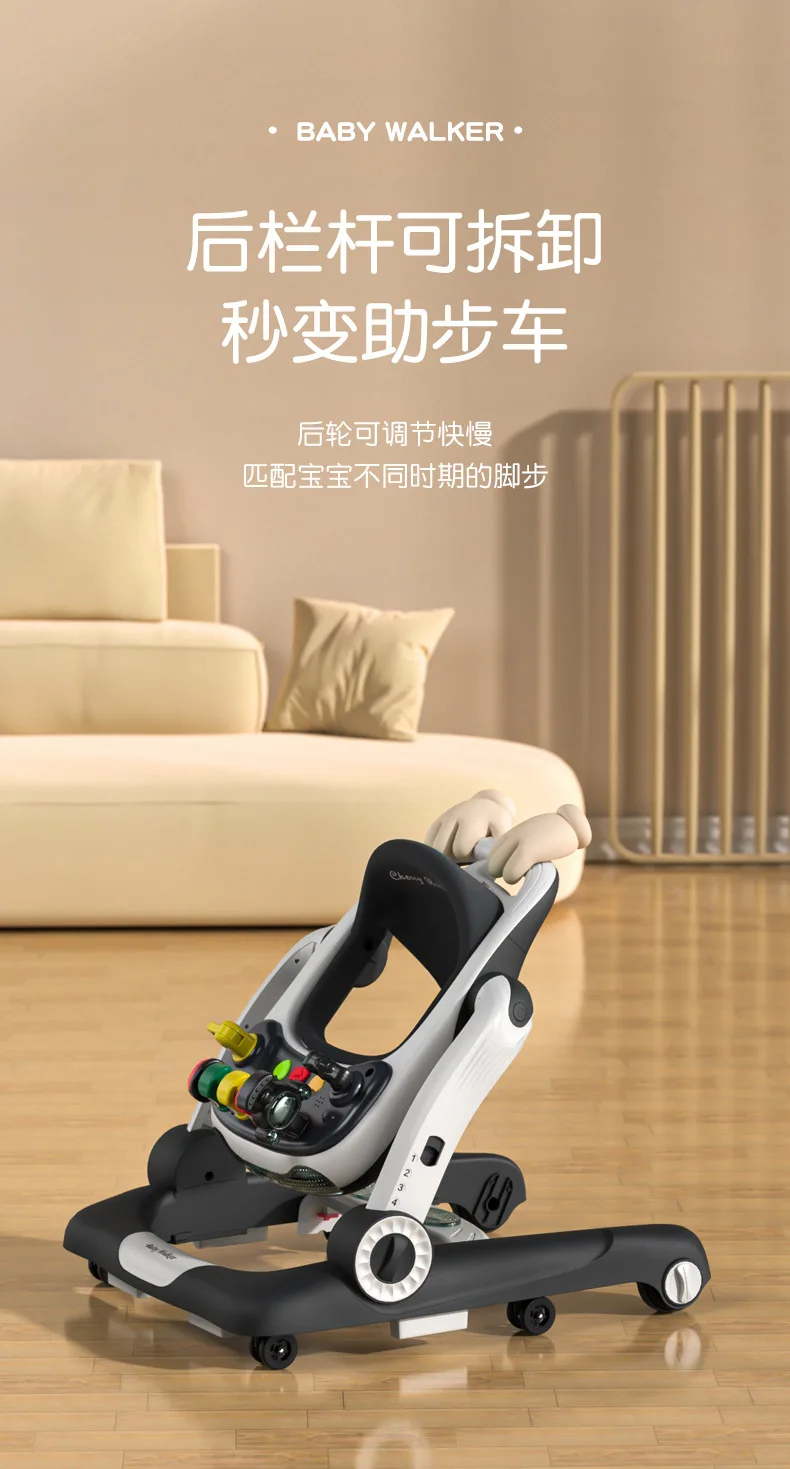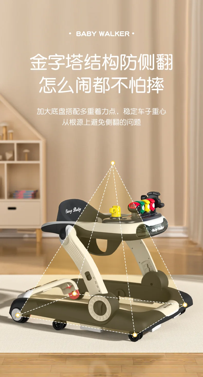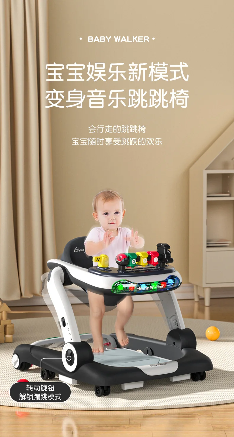 Andador de bebé antivuelco multifunción 3 en 1, carrito de empuje con juguetes, andador de actividades para bebé plegable y ajustable