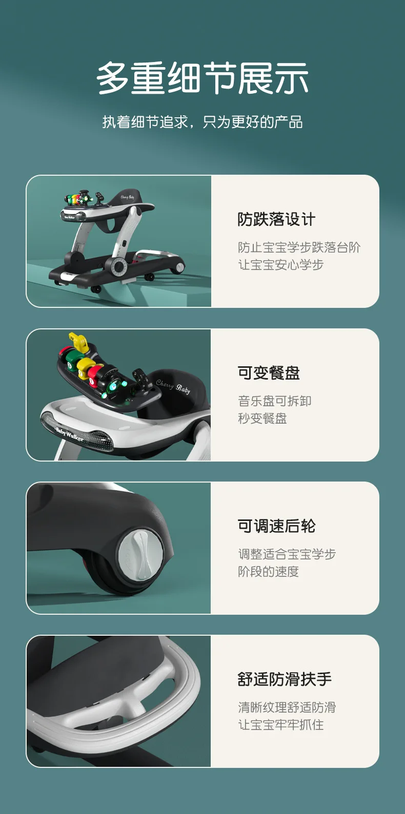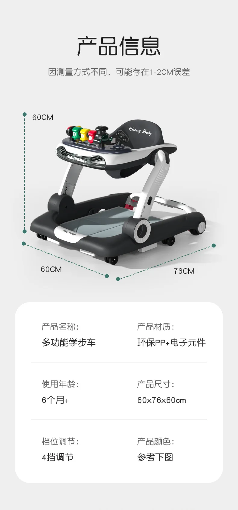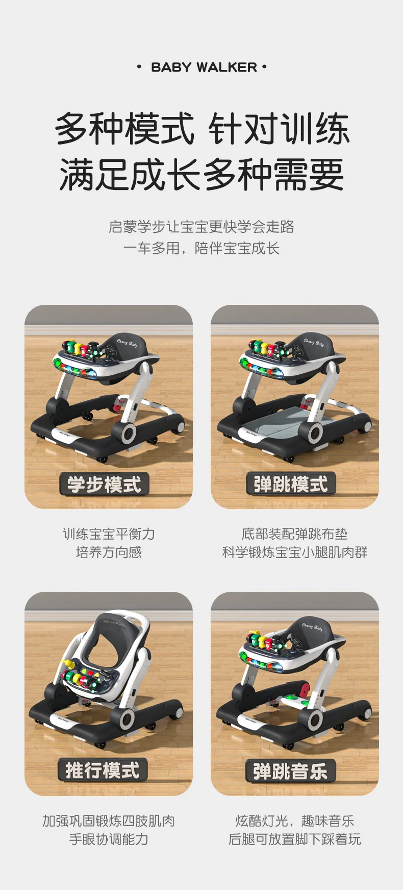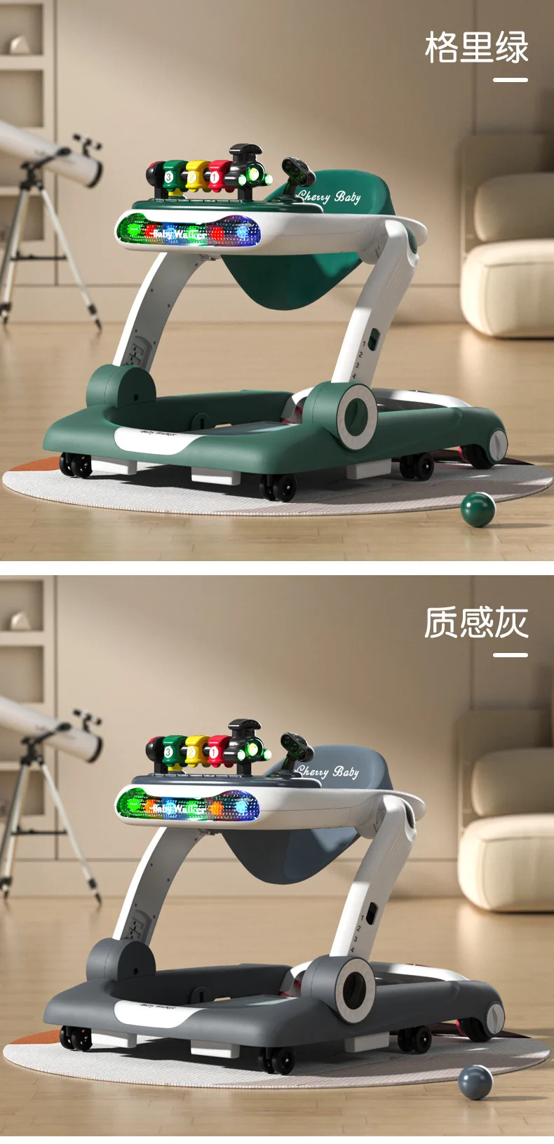 Andador de bebé antivuelco multifunción 3 en 1, carrito de empuje con juguetes, andador de actividades para bebé plegable y ajustable