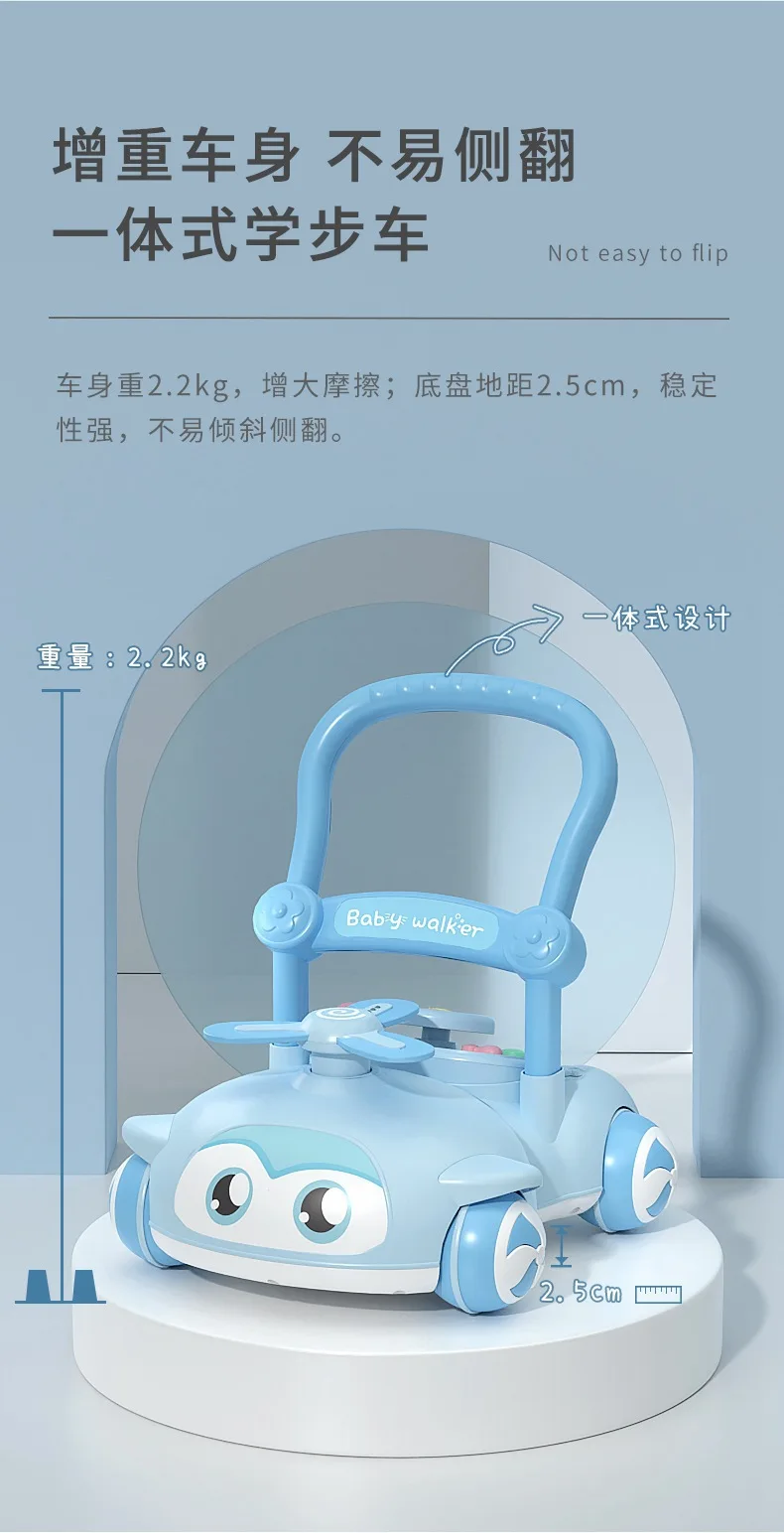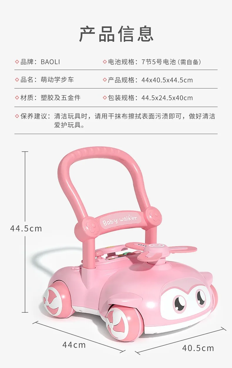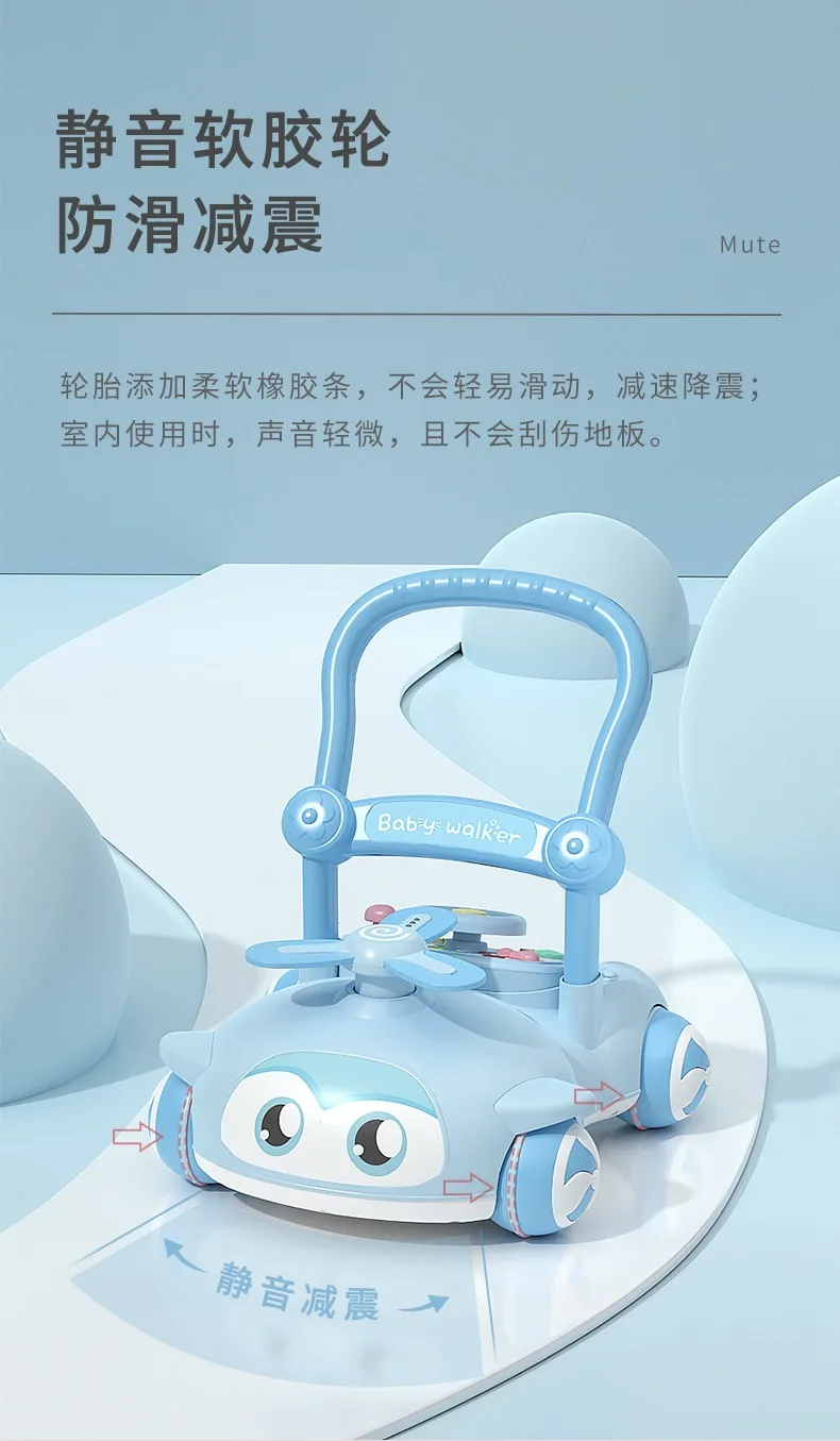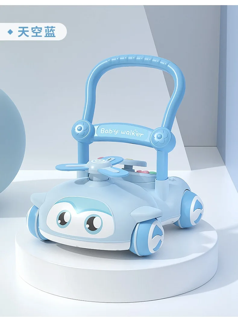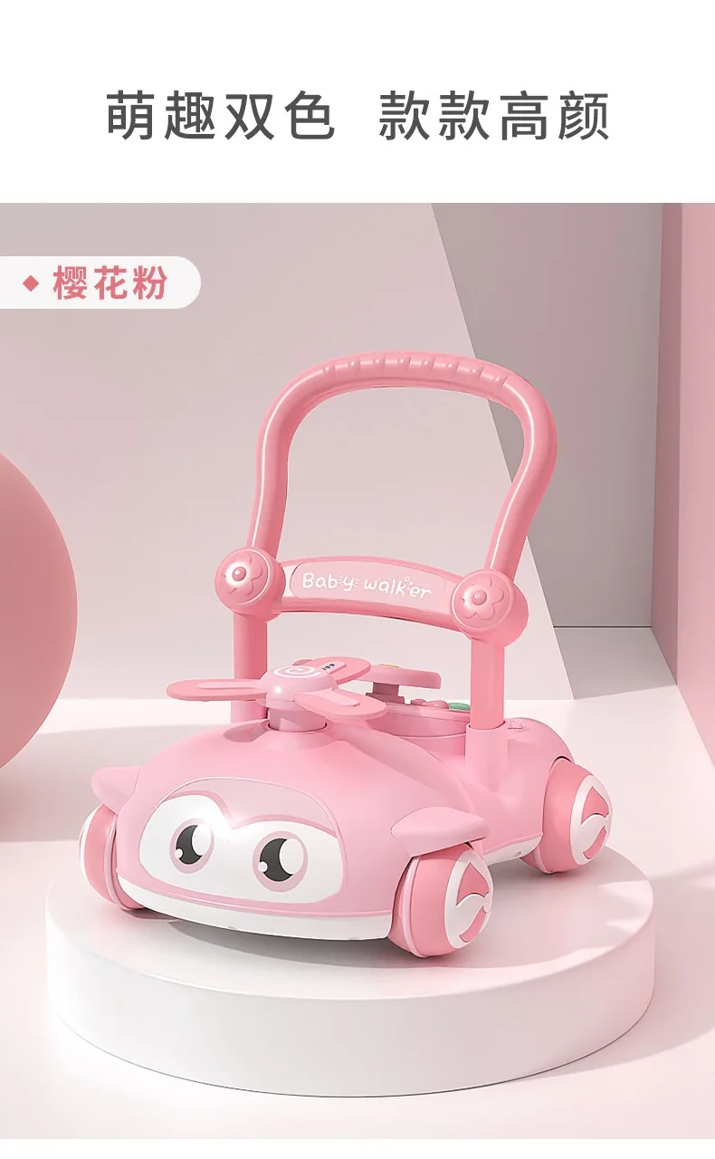 Andador de bebé multifuncional con música para niños, andador de empuje manual antivuelco para caminar