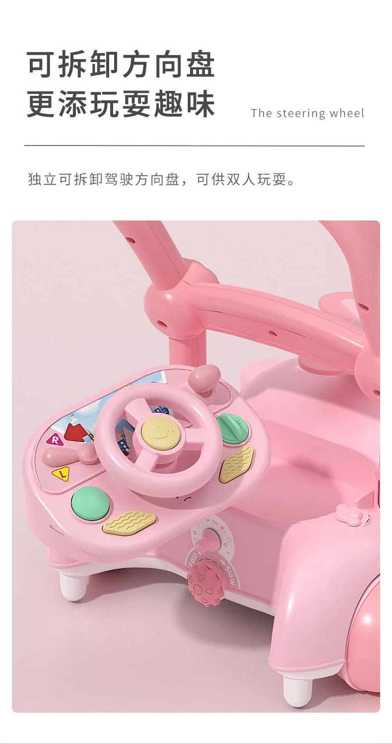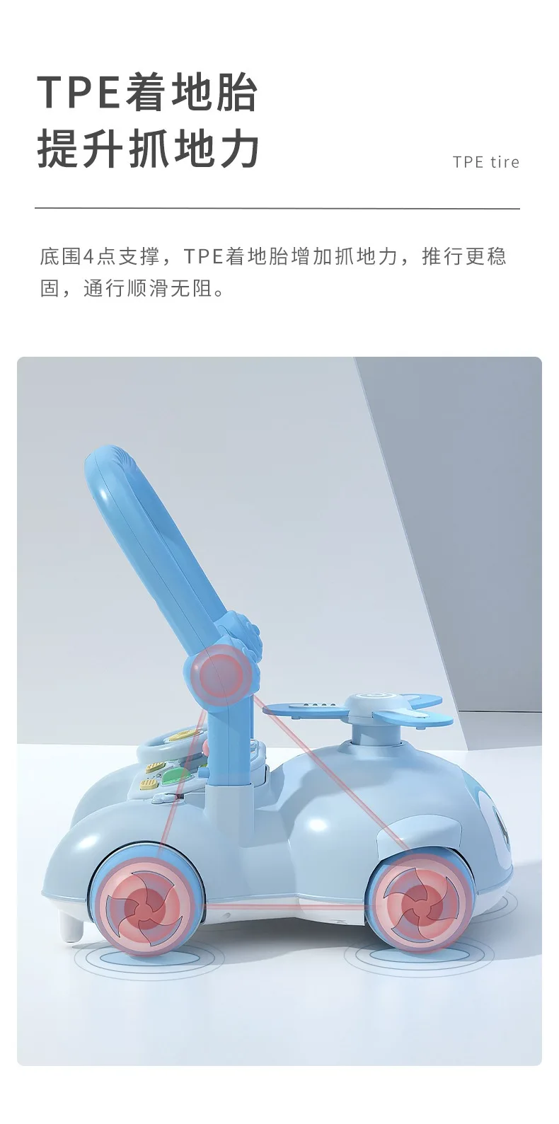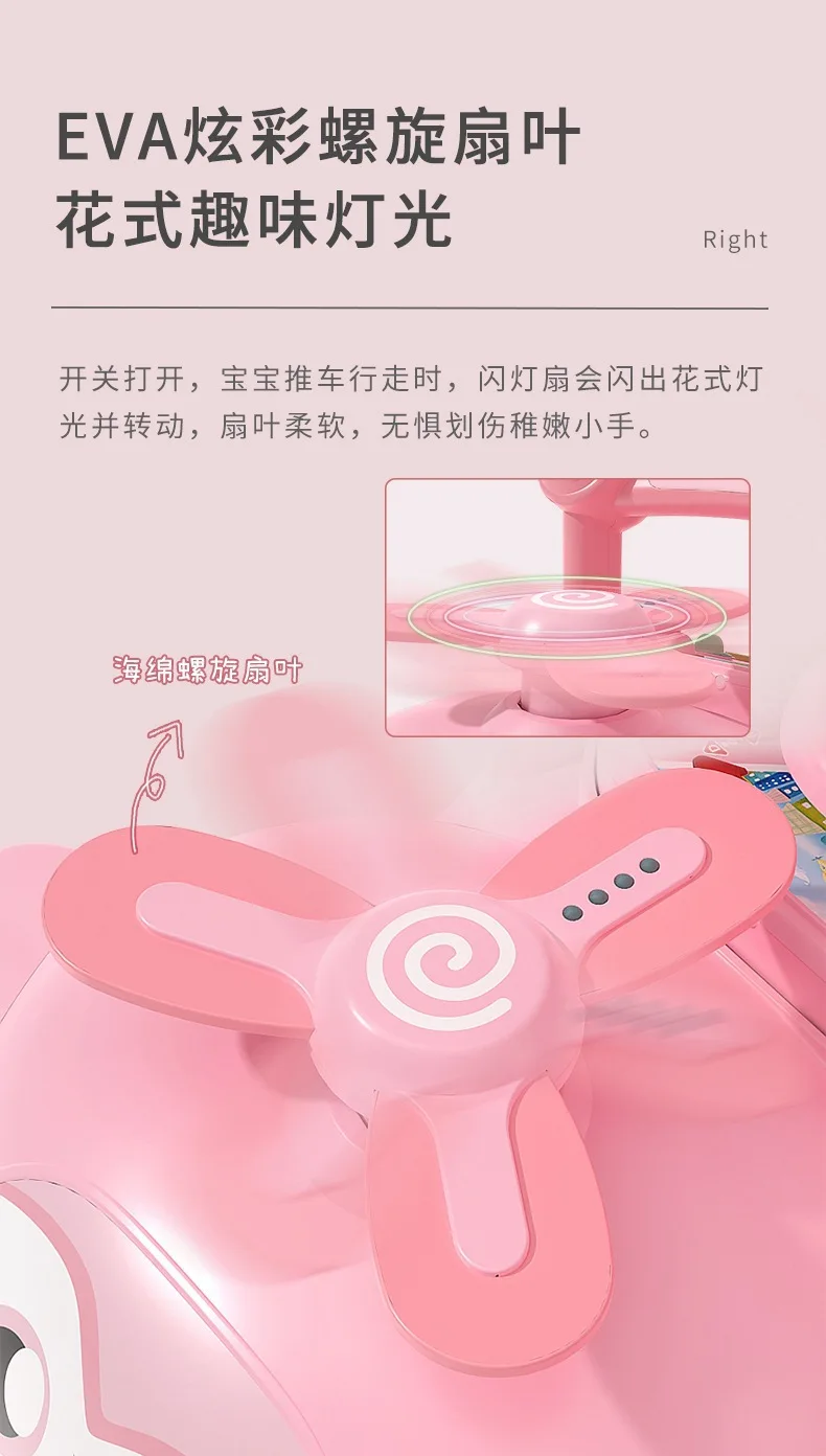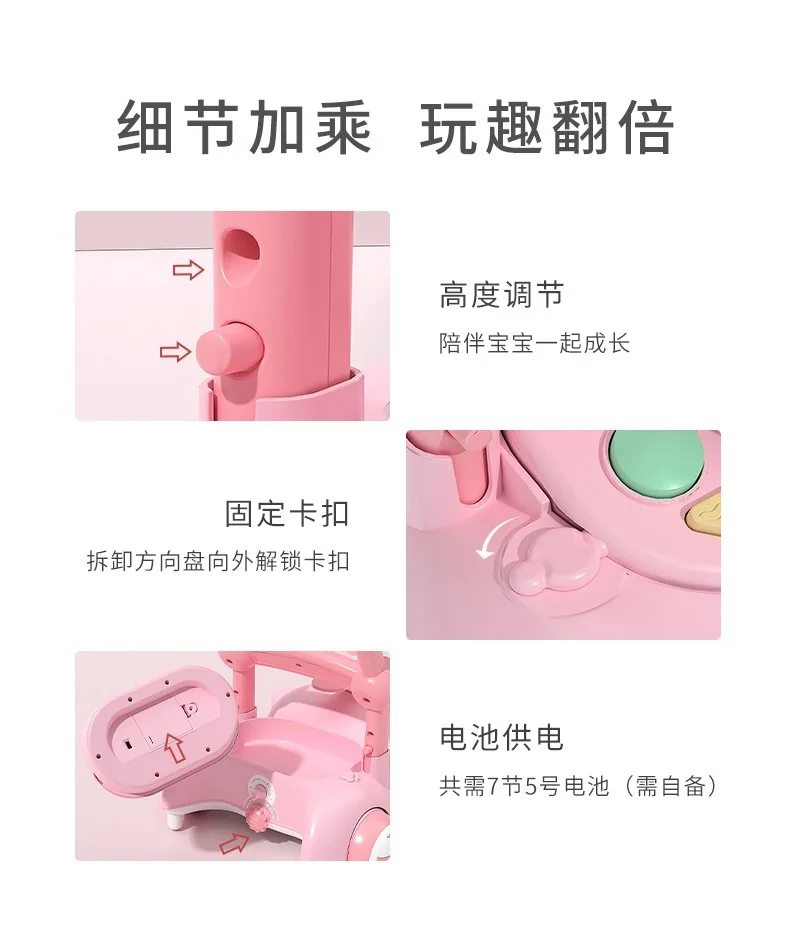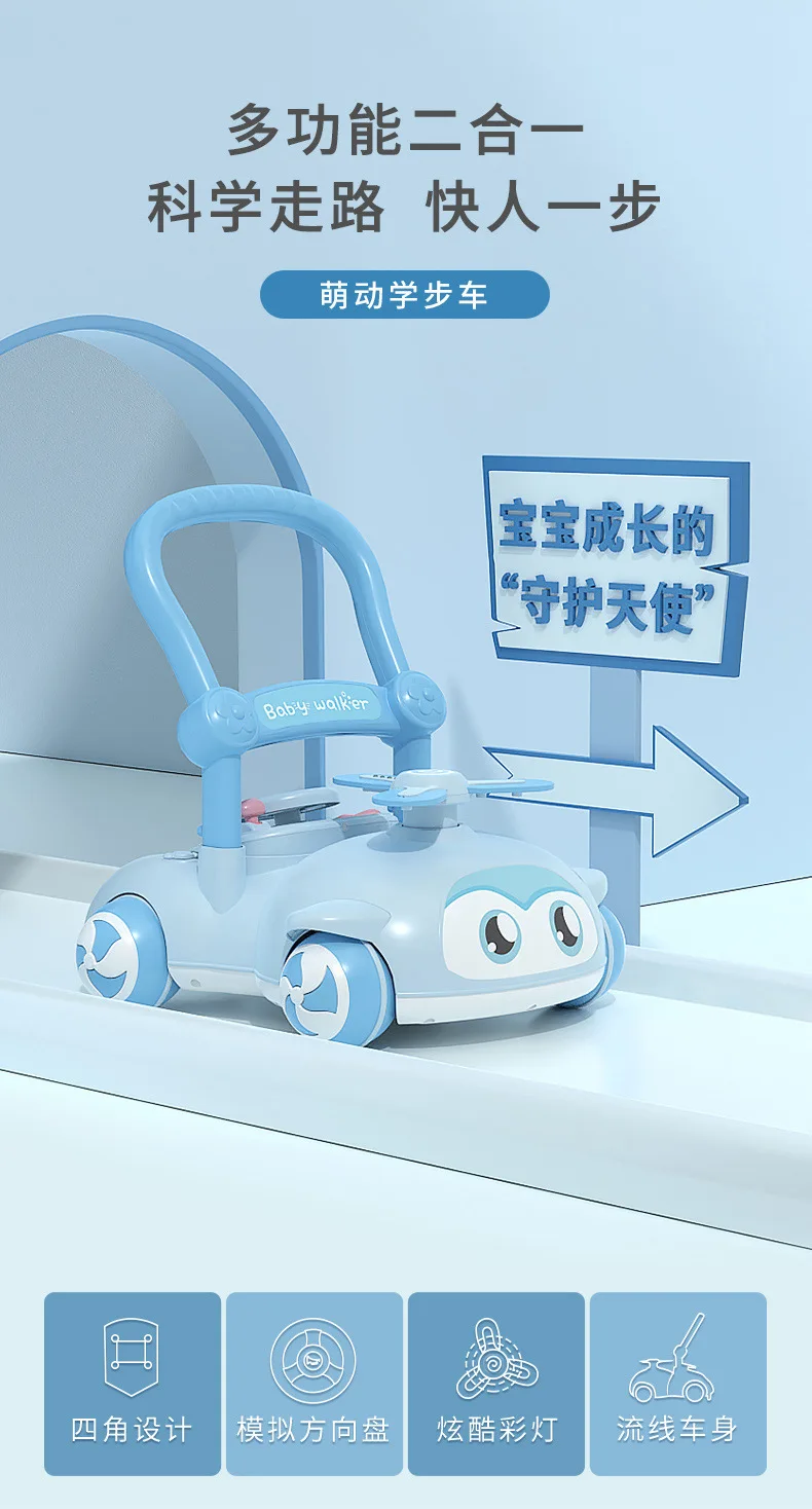 Andador de bebé multifuncional con música para niños, andador de empuje manual antivuelco para caminar