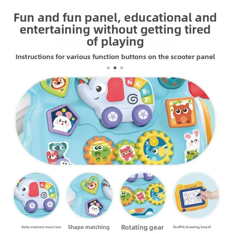 Bicicleta de aprendizaje de empuje manual con música de pequeño elefante