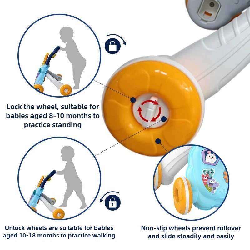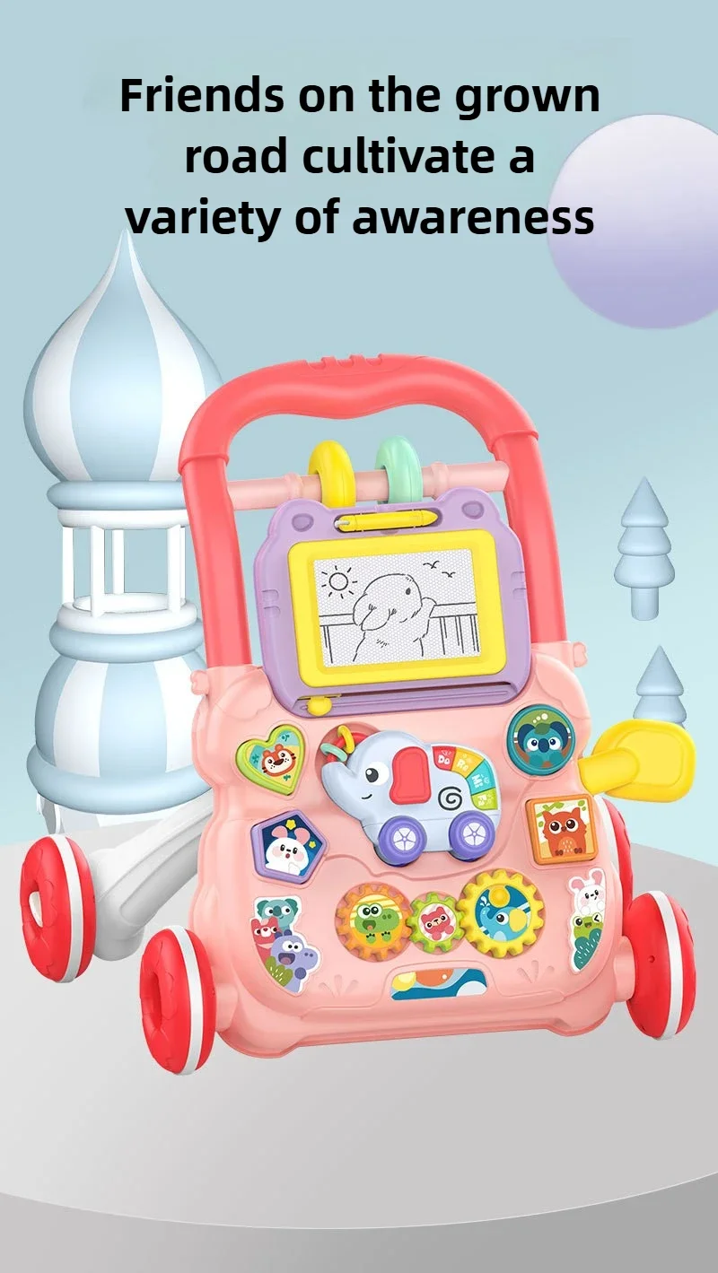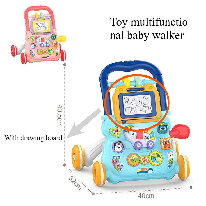 Andador musical para bebé con tablero de arte, juguete para aprender a caminar para niños de 1 a 3 años, andador asistido ajustable con actividad de dibujo musical