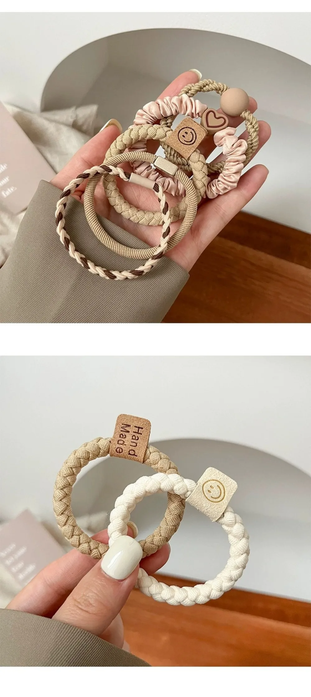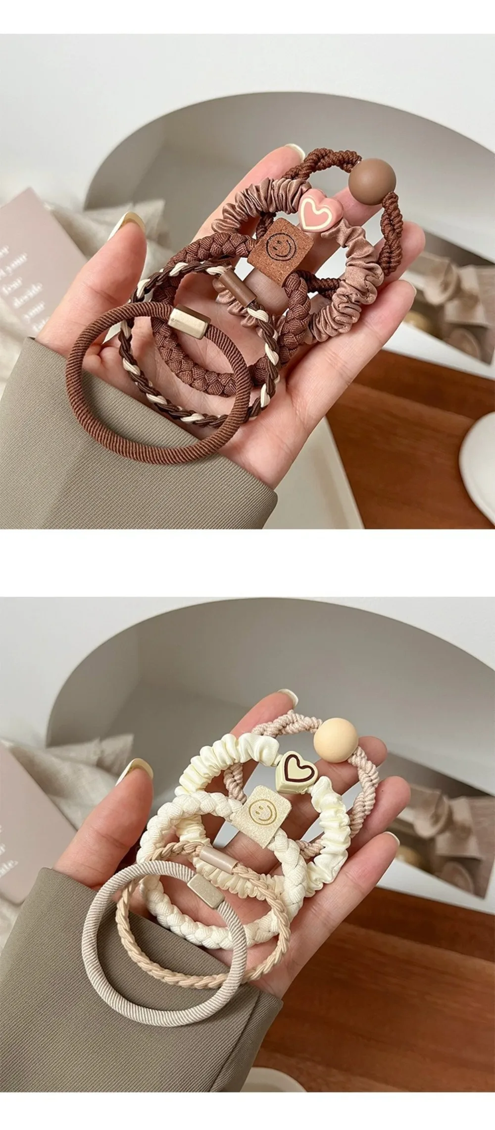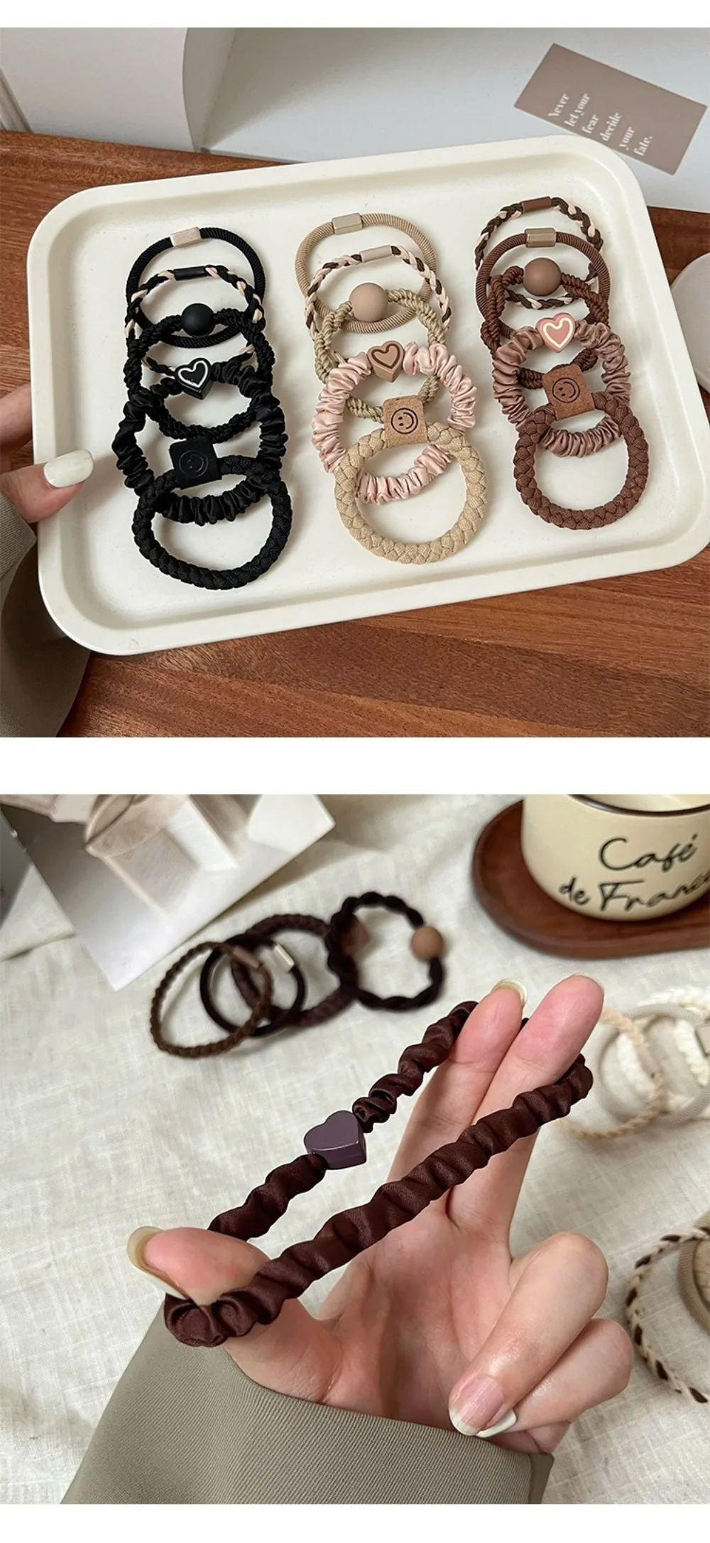 Anillo para el cabello para mujer y niña, accesorios para el cabello, banda de cuero de alta elasticidad, temperamento Simple, cola de caballo alta, durabilidad, nuevo estilo, 5 uds.