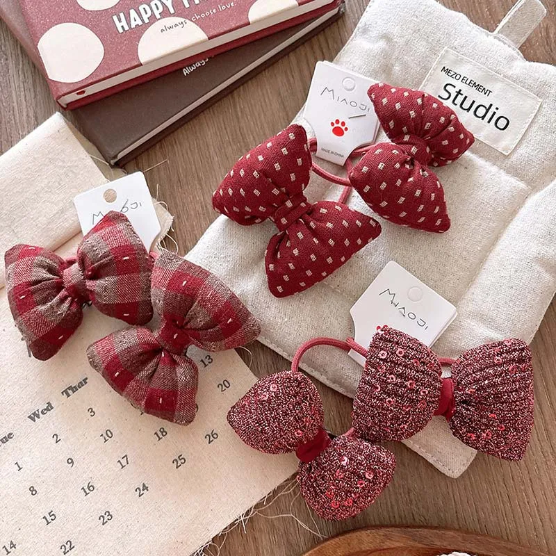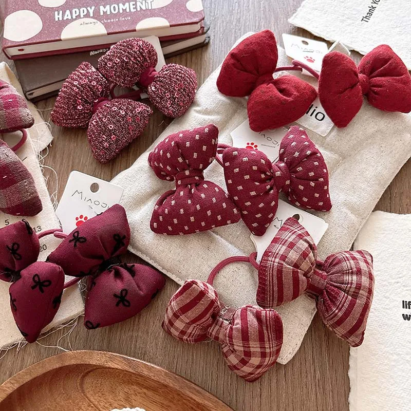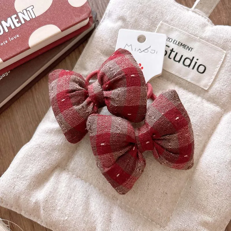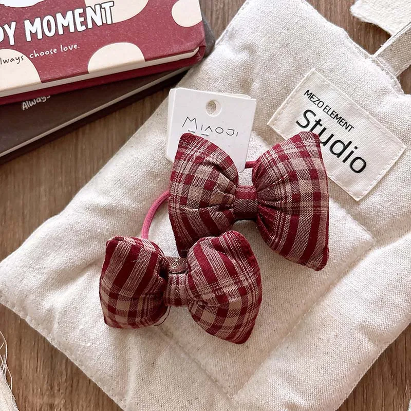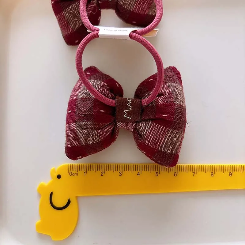 Anillo de cuerda para el pelo con lazo para niños coreanos, bandas elásticas para el pelo a cuadros rojos Vintage para niñas, accesorios para la cabeza hechos a mano, regalos, joyería