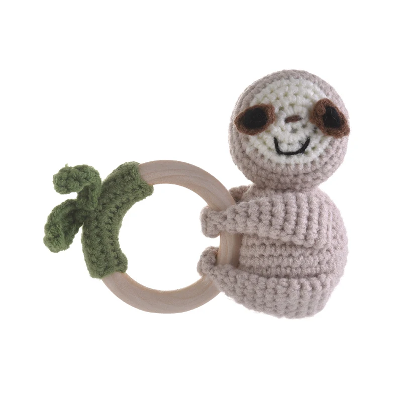 Comprar Anillo de dentición para bebé, juguete de dibujos animados de ganchillo de grado alimenticio, mordedor de madera, redondo, pulsera para cuna, sonajero colgante, 1 piezas