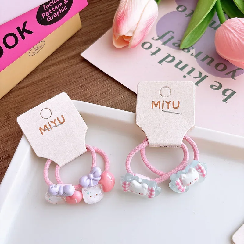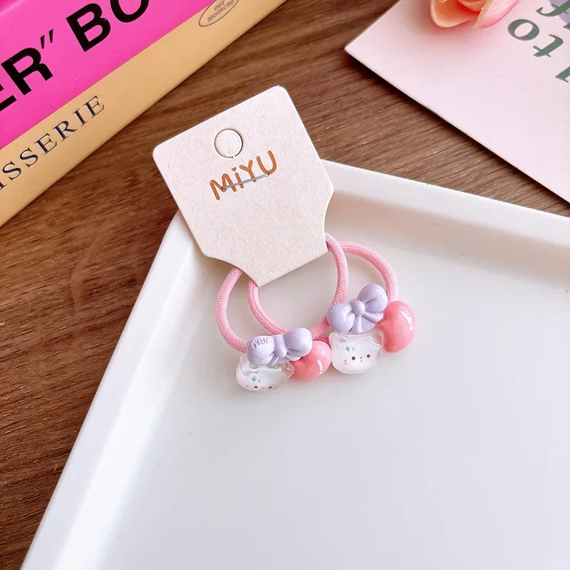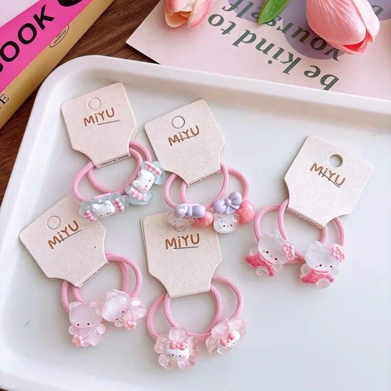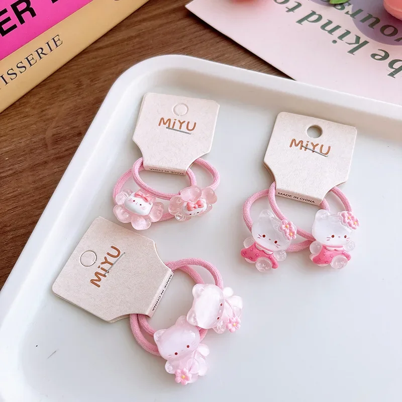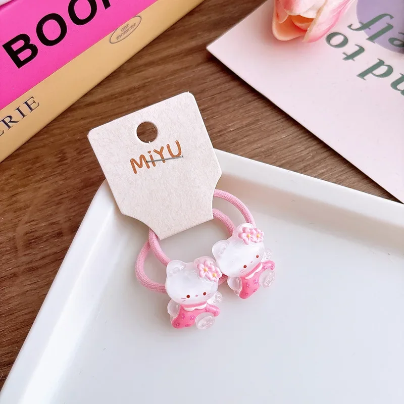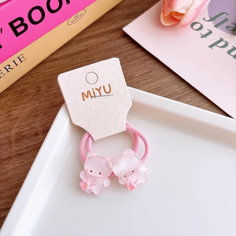 Anillo para el pelo de gato rosa para niña, banda para el pelo de dibujos animados, banda elástica coreana transparente Kawaii, accesorios para la cabeza, 2 uds.